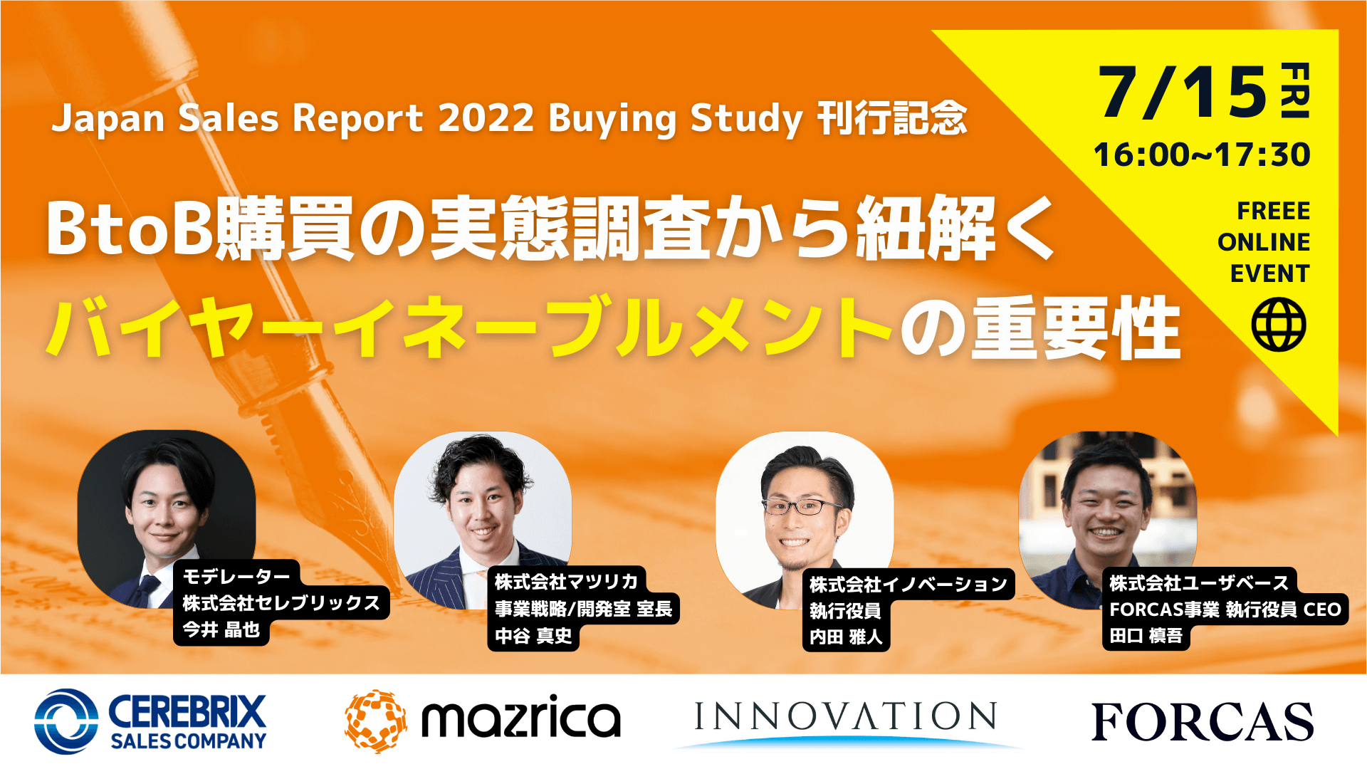 今回の調査レポートをもとに「バイヤーイネーブルメント」の重要性が浮き彫りとなりました。素晴らしい営業活動は、素晴らしい購買体験を生みます。そのためには、購買を推進するバイヤーへの深い理解は欠かせません。成約に向けてどのような部分をケアしていかなければならないのか、豪華ゲストとのパネルディスカッションを交えながら迫ります。