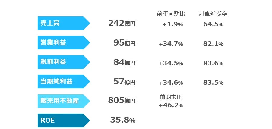 ・複数物件の新規受託と売却がそれぞれあり、売上高は前年同期比+79%の9.7億円となりました。