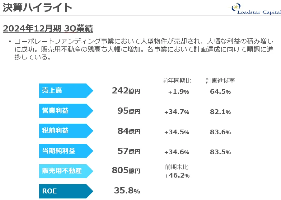 【3482 ロードスターキャピタル】2024年度第3四半期決算を発表