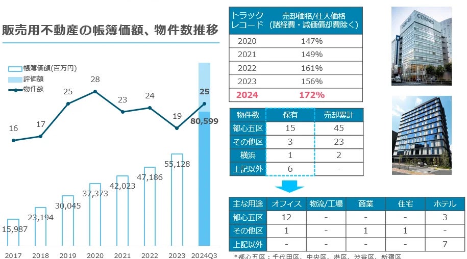 ・販売用不動産の残高も過去最大となっており、それに合わせて含み益も増加しております。