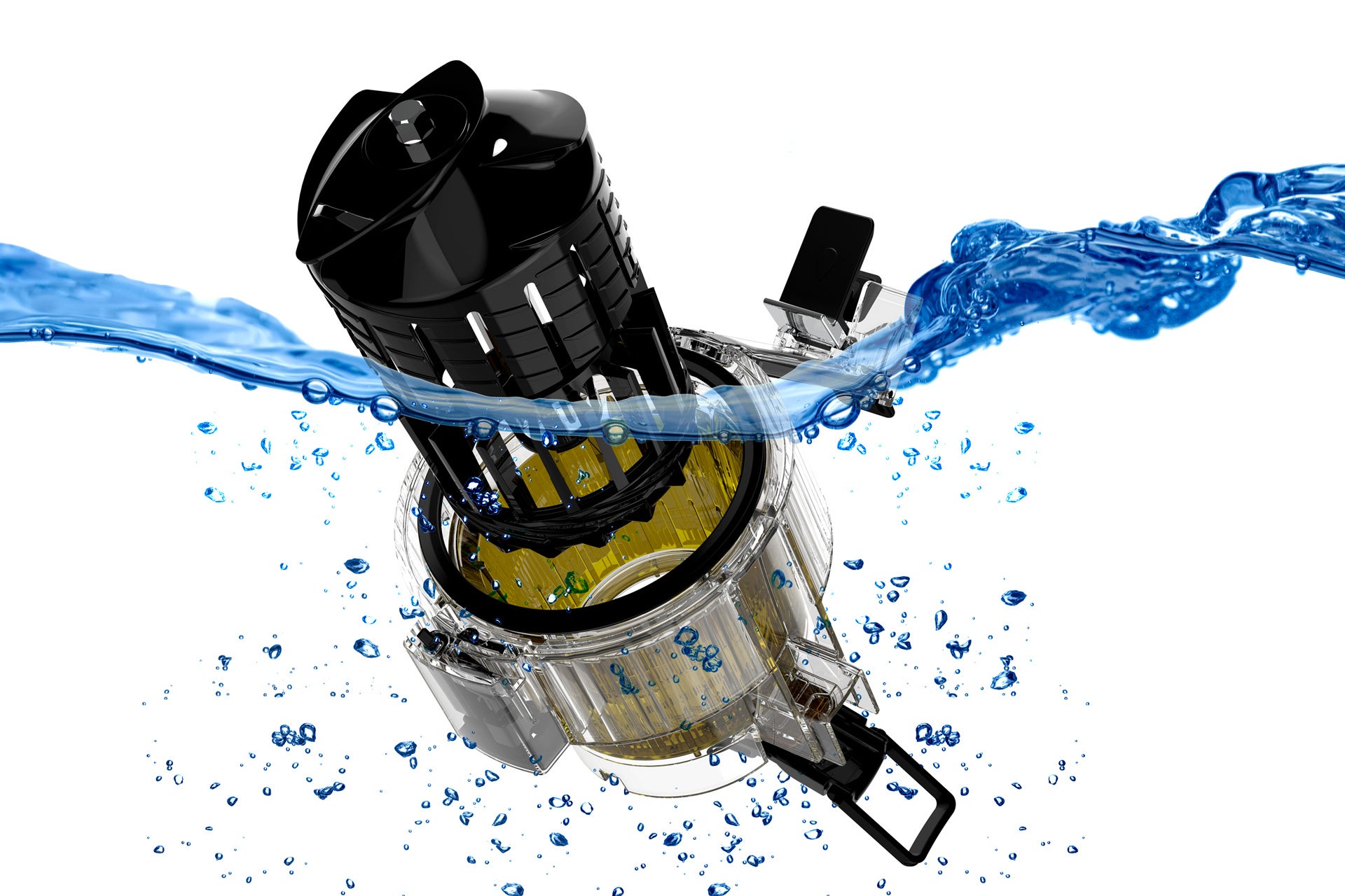スクリューとフィルターが一体化したマルチスクリューはヒューロム独自のテクノロジー。パーツが少なく分解・洗浄が簡略化されることに加えて、野菜・果物、凍った食材など食材の区別なく、ジュースやフローズンの抽出ができるオールインワン仕様。交換の手間やフィルター選択で悩むことなく、すべてジューサーに“おまかせ” 。