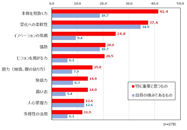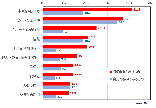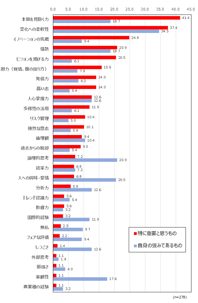- 1.これからの経営者に求められる資質の第1位は「本質を見抜く力」。