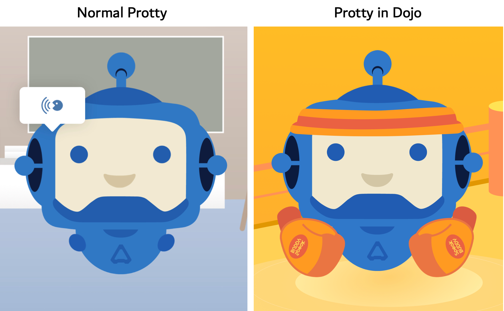 「道場の日」になると、アプリの起動画面には通常時とは異なる装いのプロティが登場し、今日が道場の日であることを宣言。ハチマキ・グローブを身につけてリングで構えるプロティが、ユーザーに特別なシチュエーションであることを感じさせます。