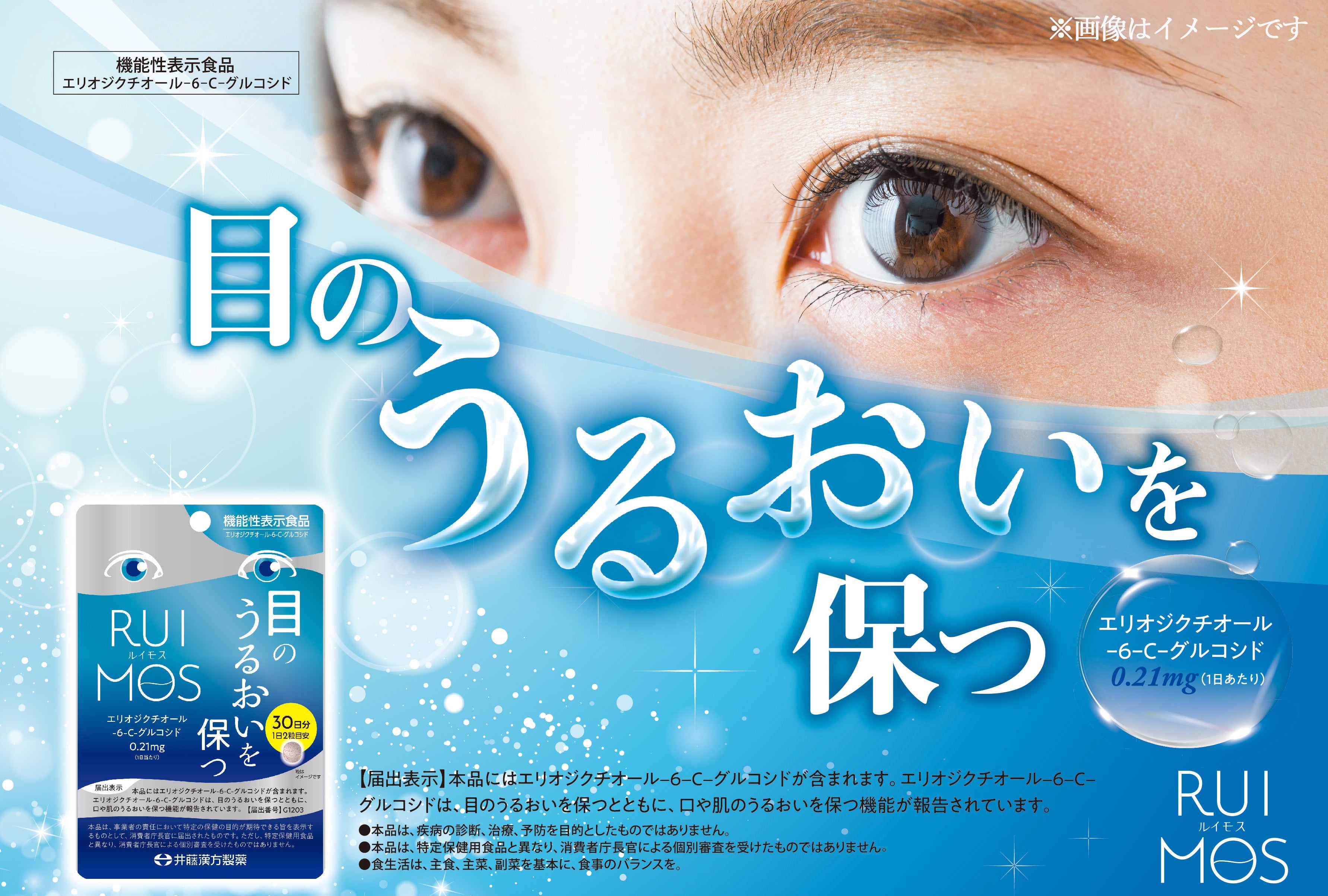 井藤漢方製薬は、この度、目のうるおいを保つ機能が報告されているエリオジクチオール-6-C-グルコシドを配合した「飲むタイプ」のサプリメントを開発いたしました。