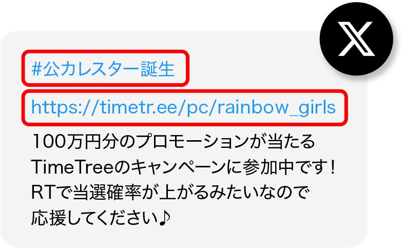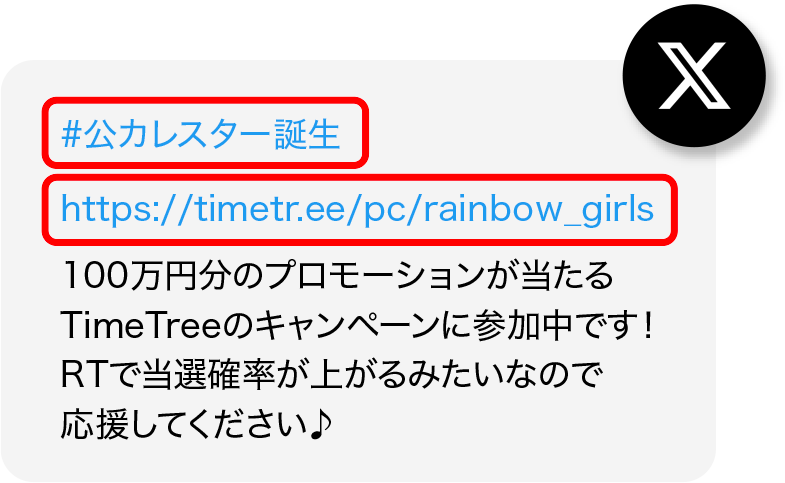 キャンペーン期間内にX(Twitter)でハッシュタグ「#公カレスター誕生」とご自身の公開カレンダーのURLを記載したツイートを投稿