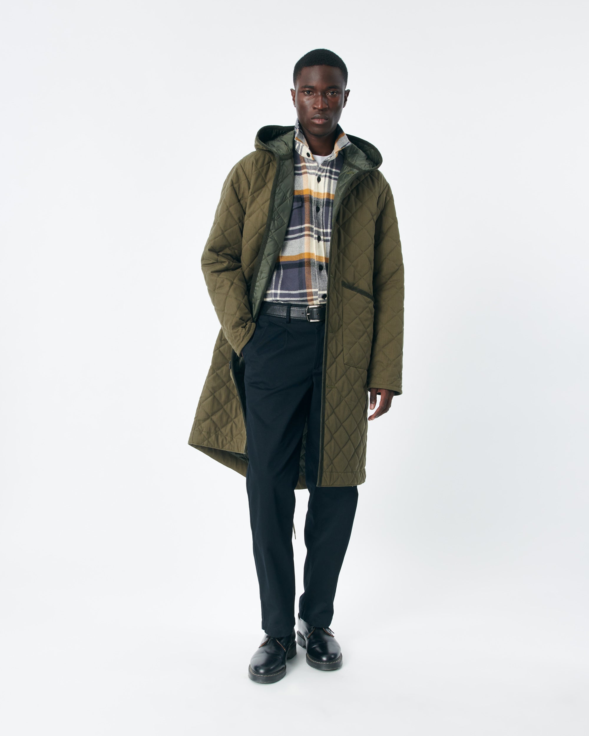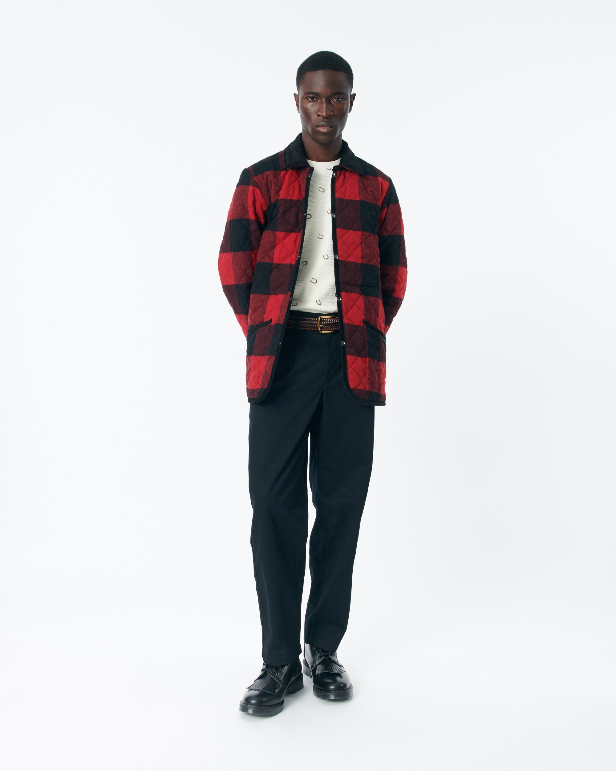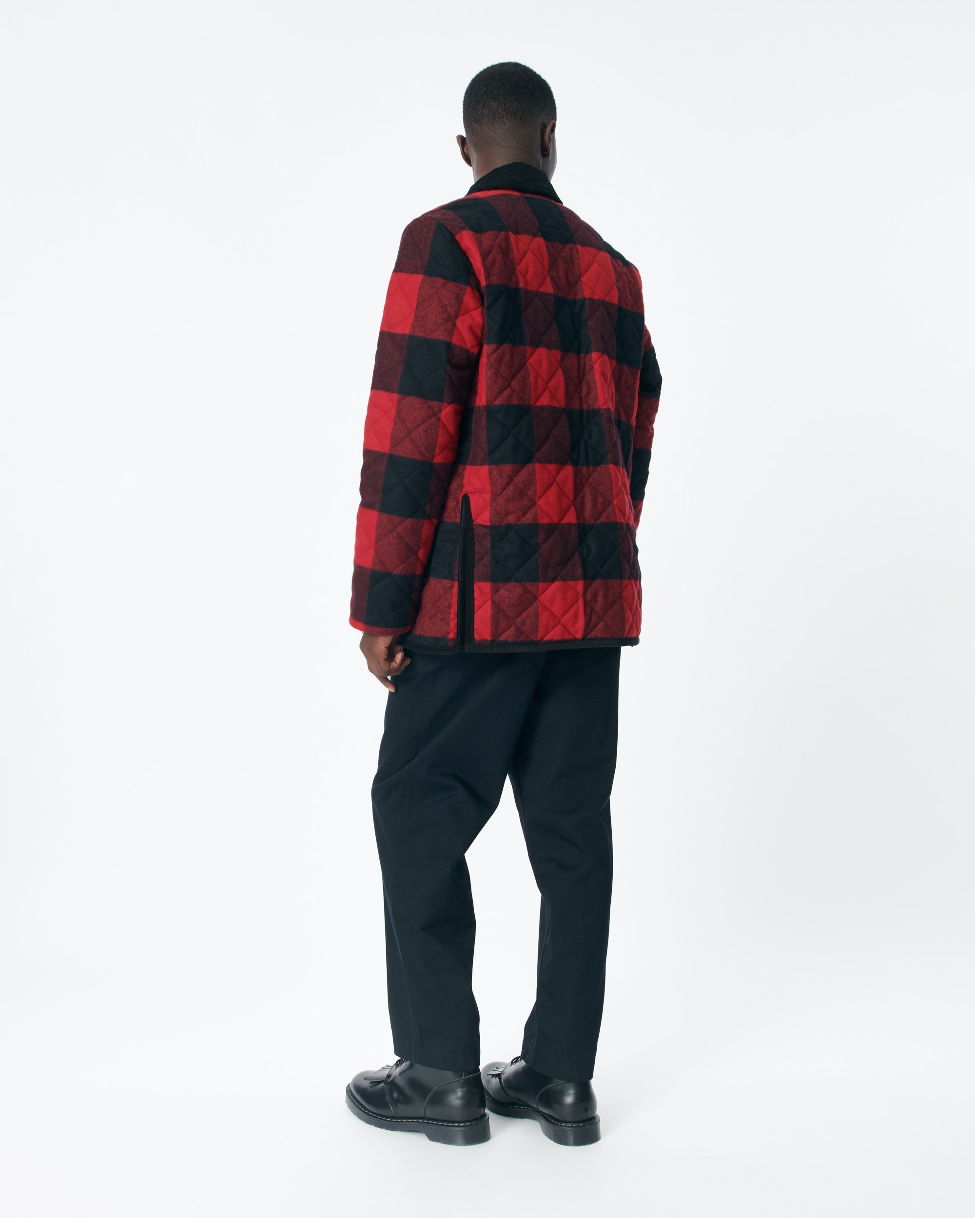 1970年代初頭に誕生した、ラベンハムの伝統的なダイヤモンドキルト、コーデュロイ襟、サイドベンツが特徴の乗馬用ジャケット、DENHAM(デンハム)の表地に、クラシックなアメリカン・ワークウェアからインスピレーションを受けたバッファローチェックが載せられています。耐久性と保温性を備えたウール混紡の表地に軽量でコンパクトなリサイクル・ポリエステルを75%使用しているため、秋冬の寒い季節だけでなく、春の朝晩寒い時期のライトアウターとしても重宝します。