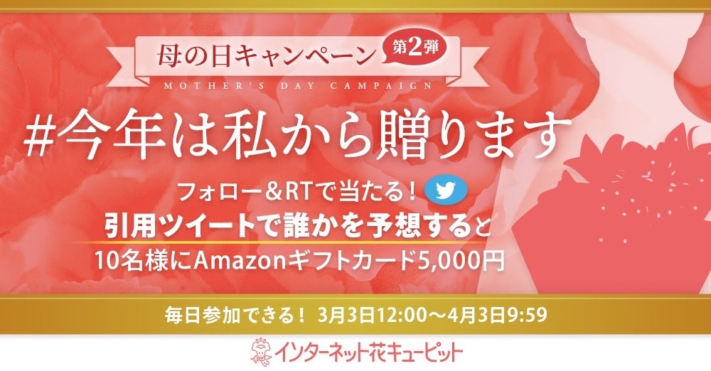 ・当てたで賞:10名様にAmazonギフトカード10,000円分&母の日特別キャンペーンの当選確率5倍