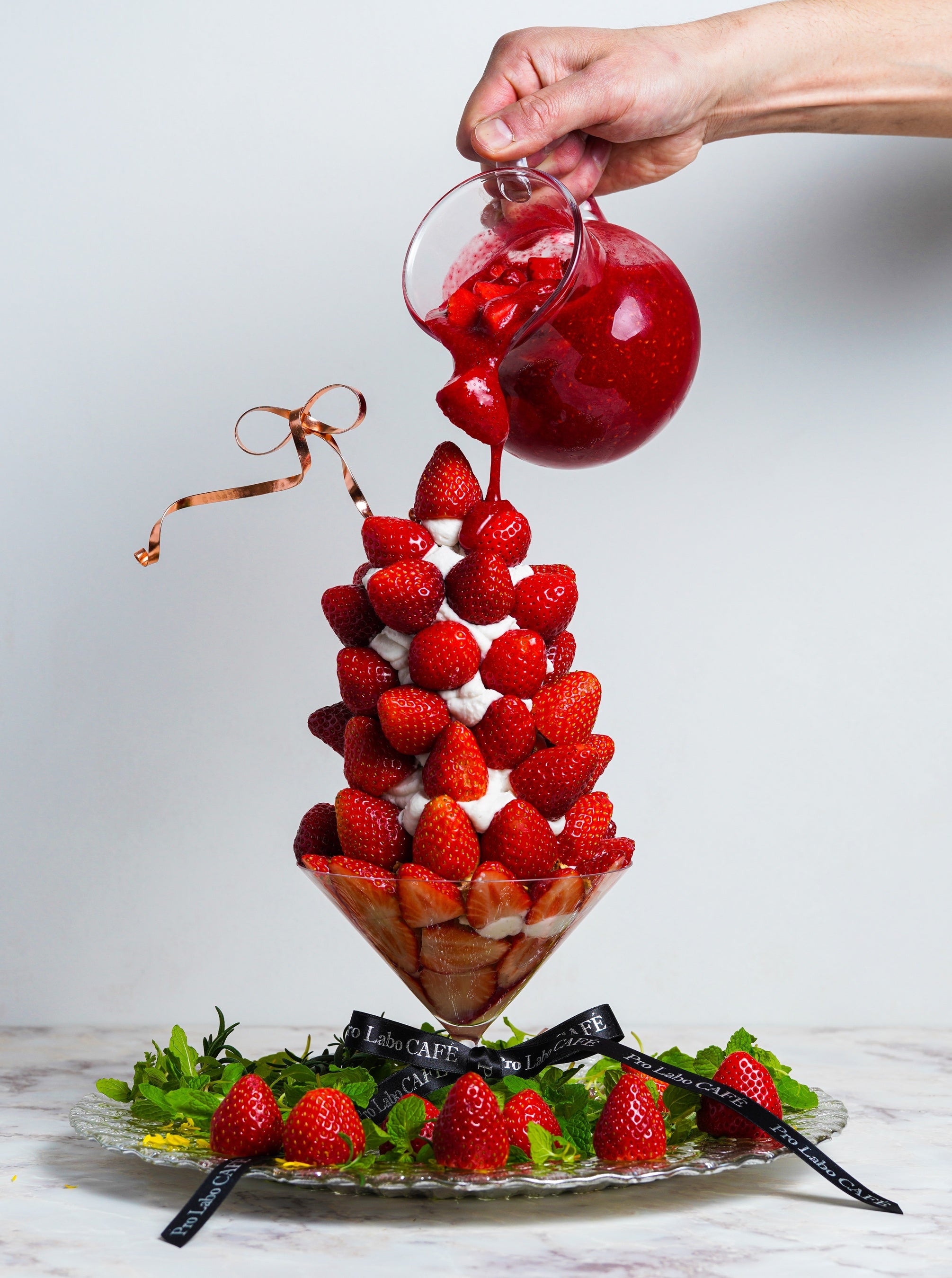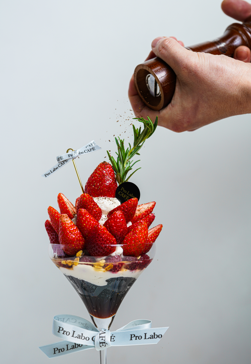宮崎県から取り寄せた有機苺をふんだんに使い、見た目も華やかな贅沢パフェとなっています。