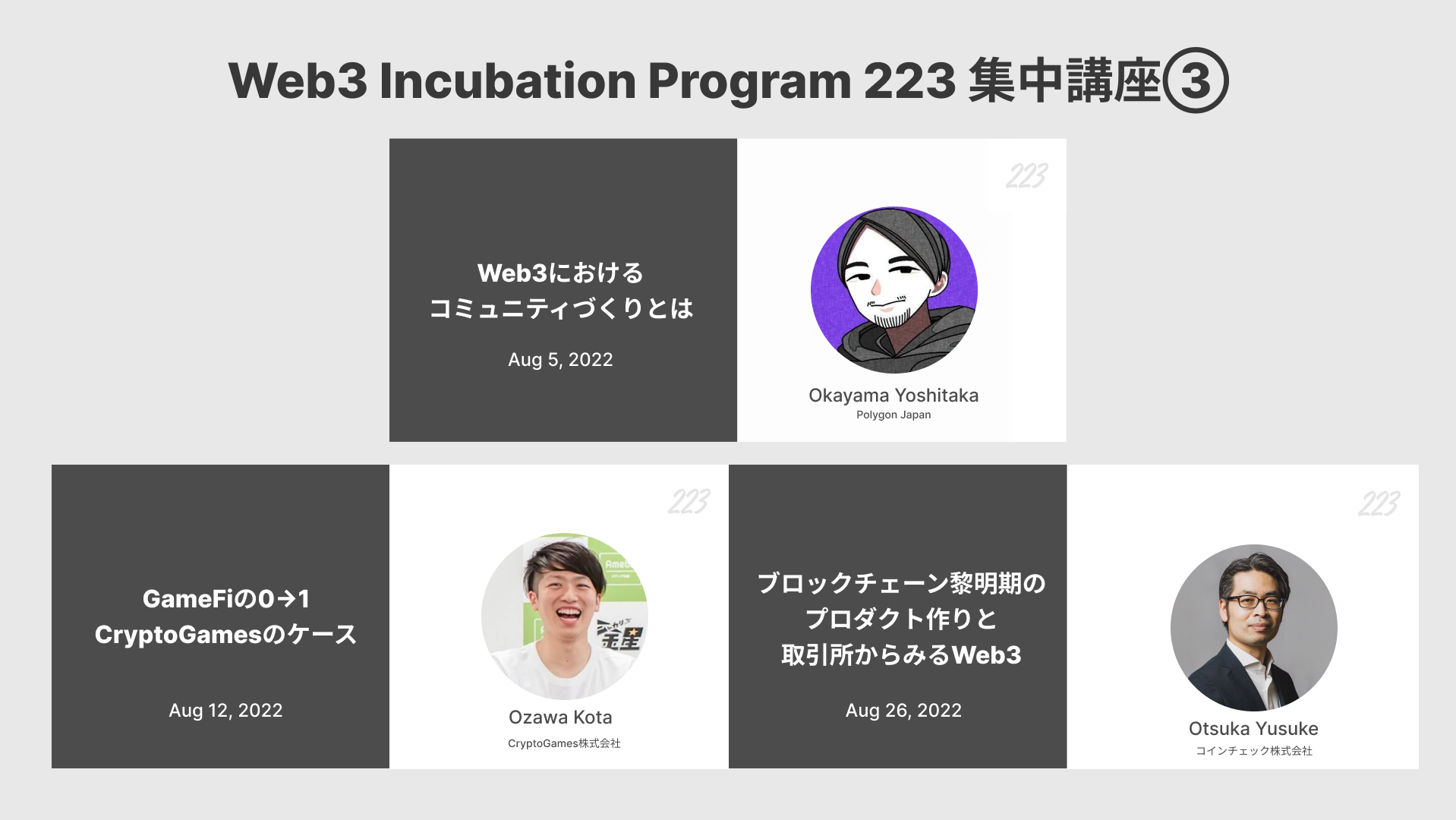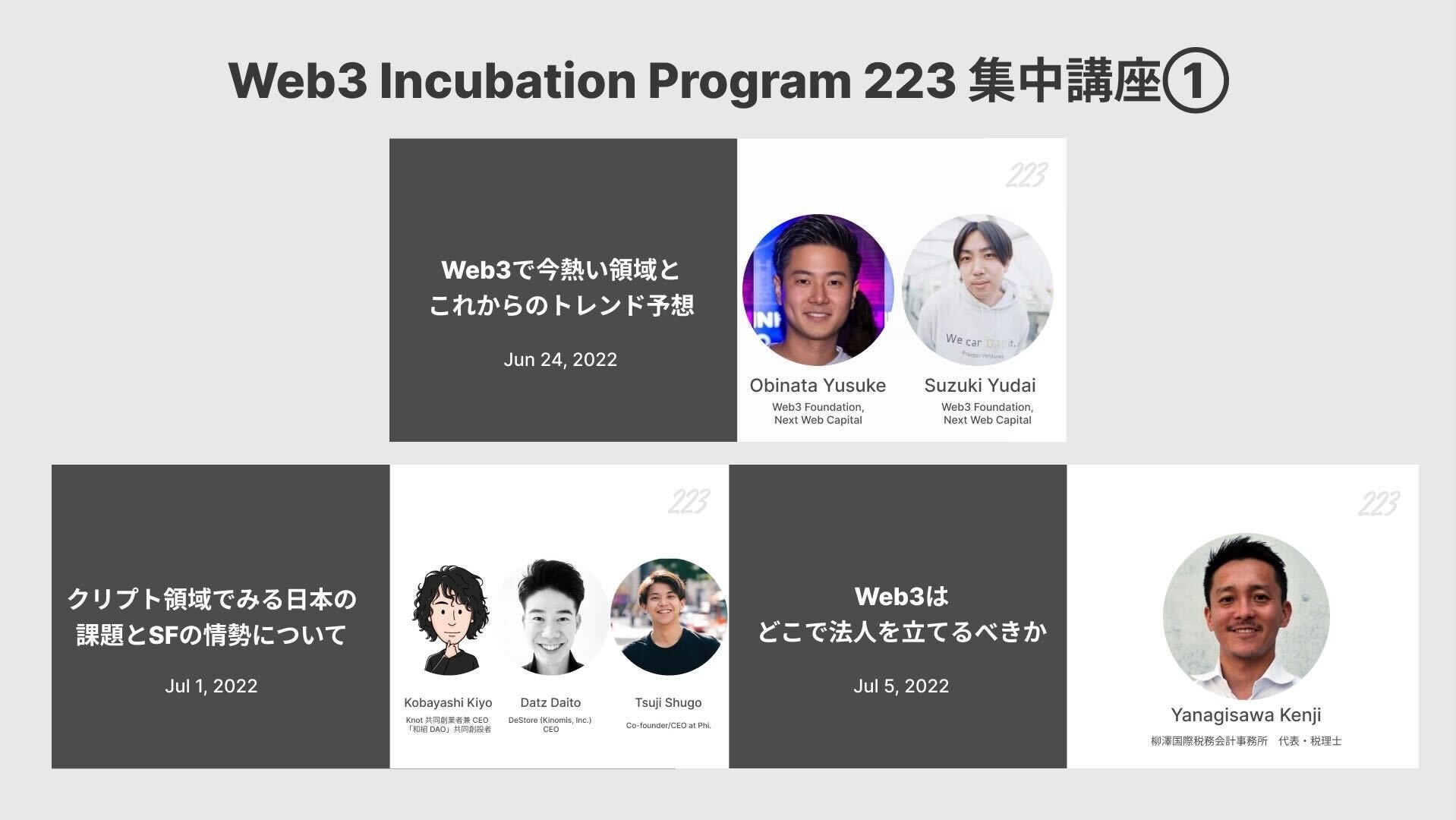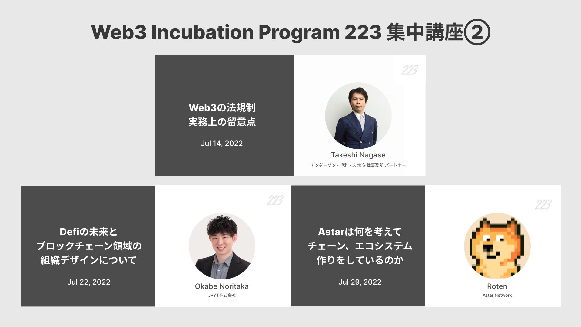 Web3インキュベーションプログラム「223」のサポーター、メンター及び講座内容が決定!