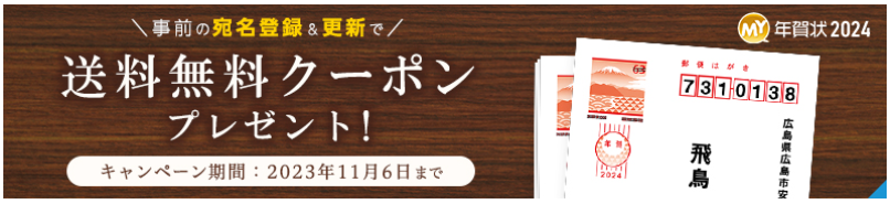 キャンペーン期間中に、マイブック年賀状マイページにある宛名リストを新規登録・更新すると、後日“送料無料クーポン”をプレゼント!