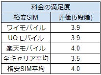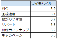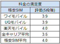 ワイモバイルの料金プランの満足度は5点満点中 3.9点。