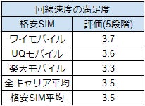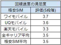 ワイモバイルの回線速度の満足度は5点満点中 3.7点です。