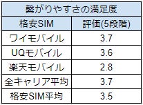ワイモバイルの繋がりやすさの満足度は5点満点中 3.7点です。