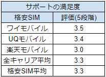ワイモバイルのサポート面での満足度は5点満点中 3.5点です。