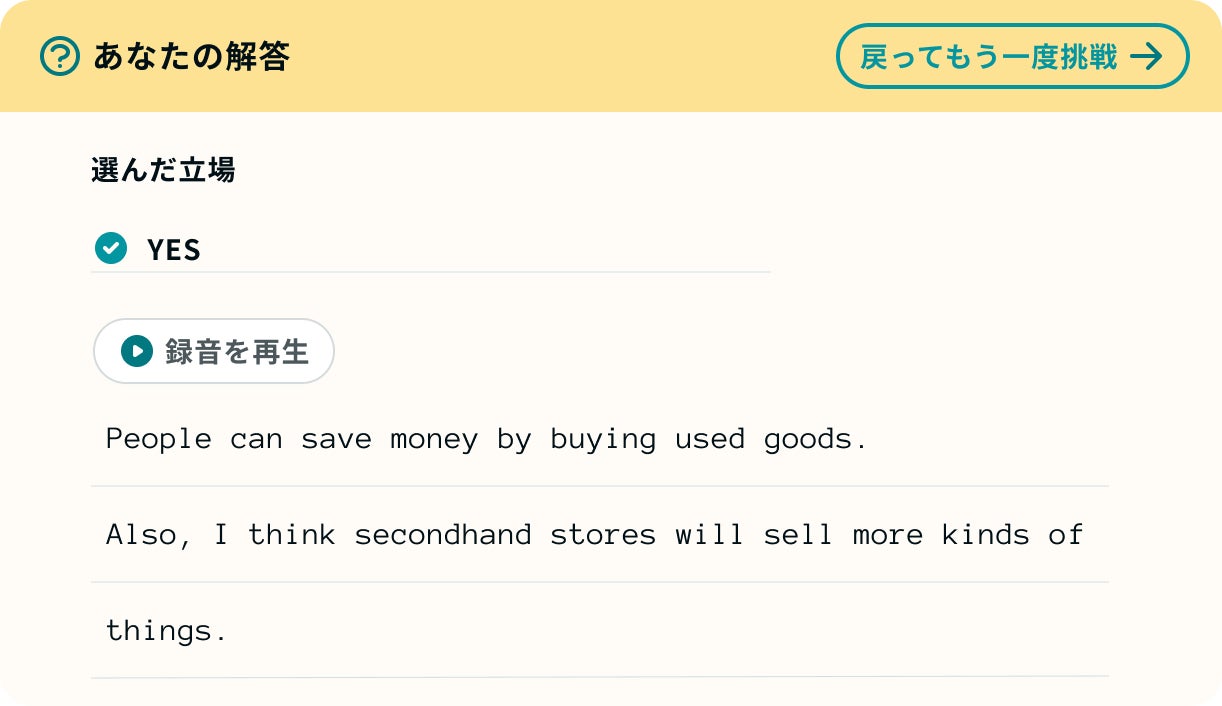 ※このコンテンツは、公益財団法人 日本英語検定協会の承認や推奨、その他の検討を受けたものではありません。「AI添削」について公益財団法人 日本英語検定協会による如何なる監修も指導も受けておらず、採点の品質について同協会から認められたものでは一切ございません。