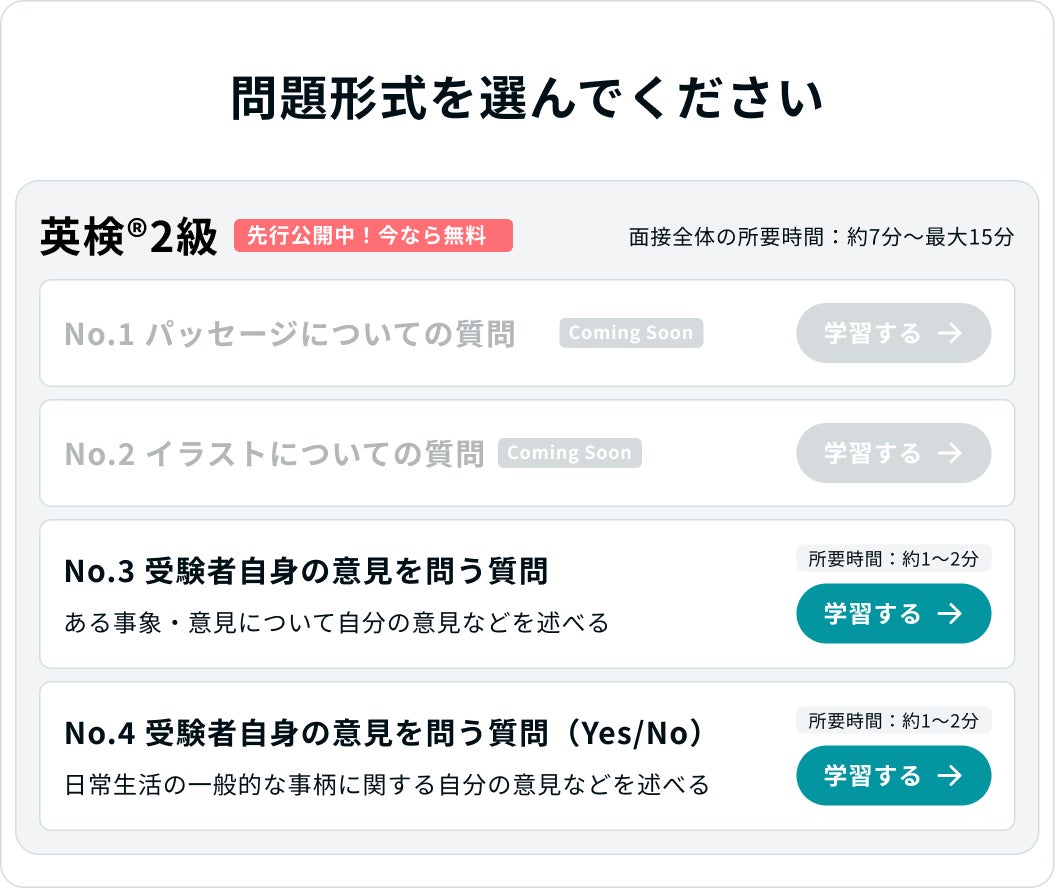 英検🄬2級の「受験者自身の意見を問う質問」に対応し、ベータ版として先行公開いたします。