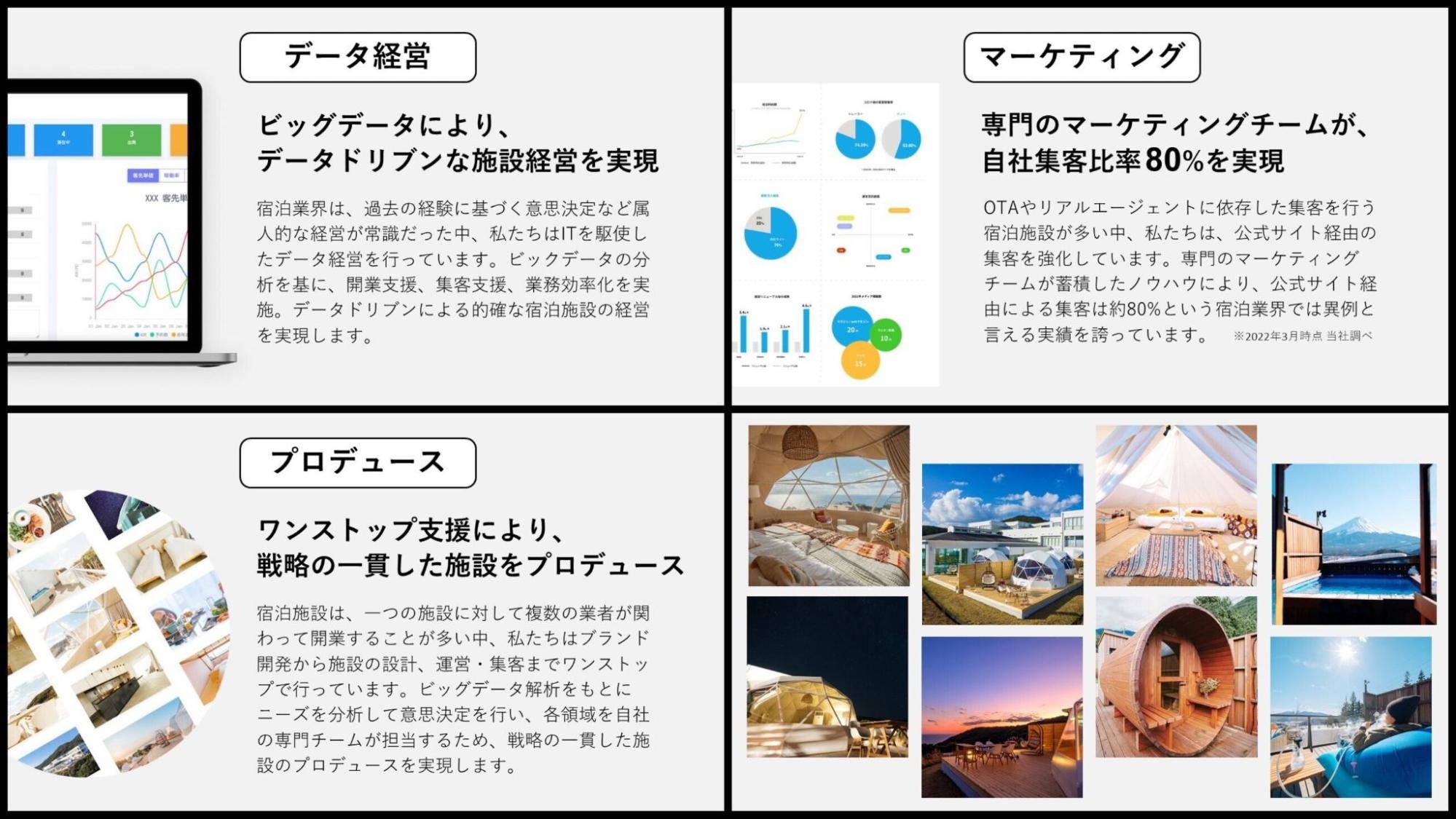 事業内容:リゾートホテル・グランピング施設の開業支援、運営受託、コンサルティング