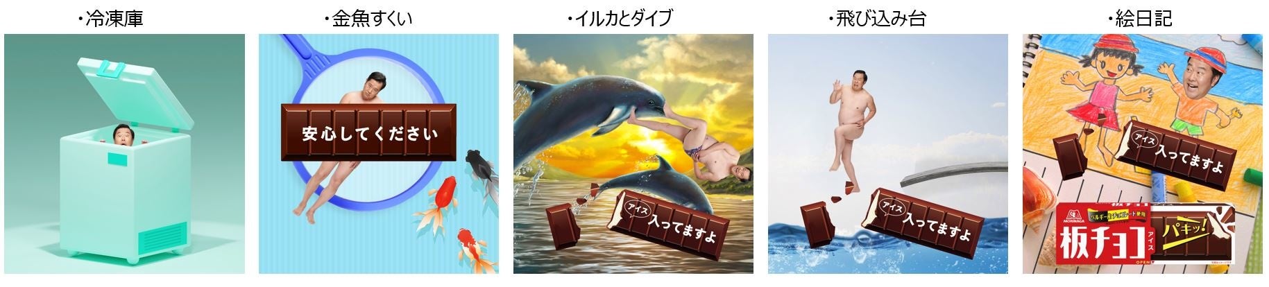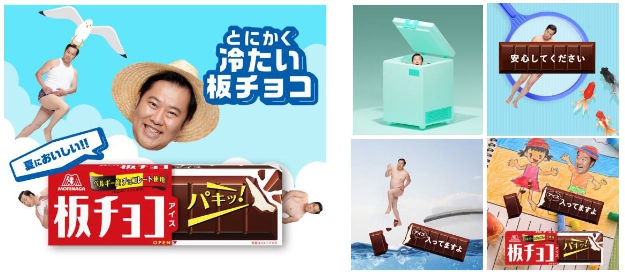 本キャンペーンでは、アイスが入っているのに入っていないように見える「板チョコアイス」と、パンツを履いているのに履いていないように見える「とにかく明るい安村」さんがコラボ。見た目は板チョコですが、中にアイスが入っていることで、夏でもさっぱりひんやりと、くちどけ滑らかなチョコを楽しめる「とにかく冷たい板チョコ」をとにかく明るい安村さんが表現します。キャンペーンにご参加いただいた方の中から抽選で毎週10名様に、Amazonギフト券1,000円分が当たるほか、「とにかく明るい安村さんオリジナルコラボGIF画像」を参加者全員にプレゼントします。GIF画像は全25種あり、とにかく明るい安村さんが様々な夏の風物詩の中に登場。お馴染みのポーズをはじめ、バリエーション豊かな表現で「板チョコアイス」の魅力をアピールする、ポップでシュールなGIF画像になりました。