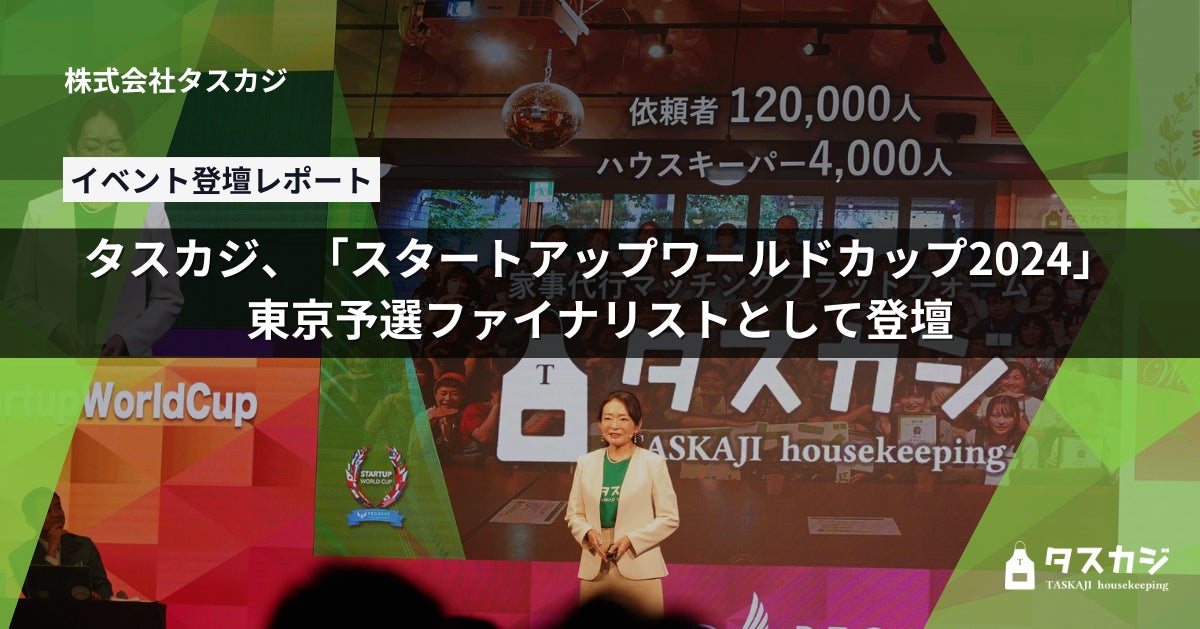 シェアリングエコノミーの家事代行マッチングプラットフォーム「タスカジ」を運営する、株式会社タスカジ(本社:東京都港区、代表取締役:和田幸子、以下タスカジ)は、世界最大級のビジネス・ピッチコンテスト「スタートアップワールドカップ2024」の東京予選ファイナリストとして選出され、2024年7月19日(金)にタスカジ代表の和田が登壇いたしました。タスカジは全11社のファイナリストのうちの1社として、法人向け事業の“家のナカ”オープンイノベーションを実施する「タスカジ研究所」の新規事業についてのピッチに臨みました。