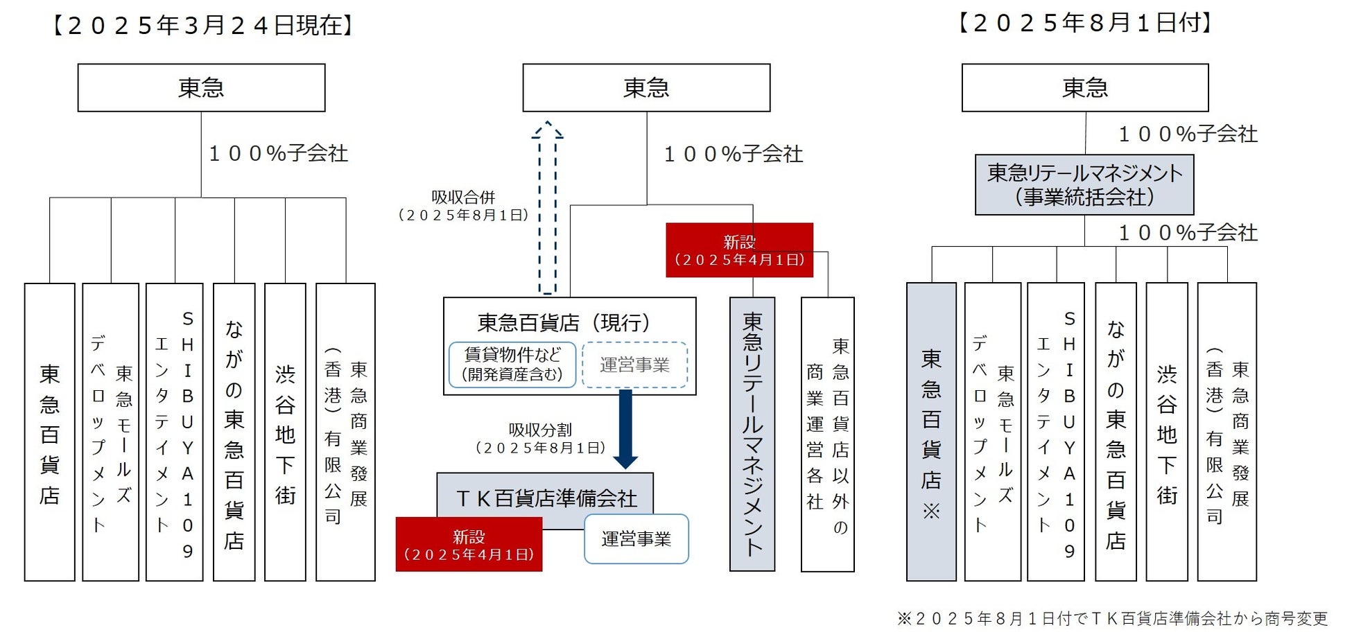 ①東急百貨店の運営事業をTK百貨店準備会社(同日付けで株式会社東急百貨店に商号変更)へ吸収分割