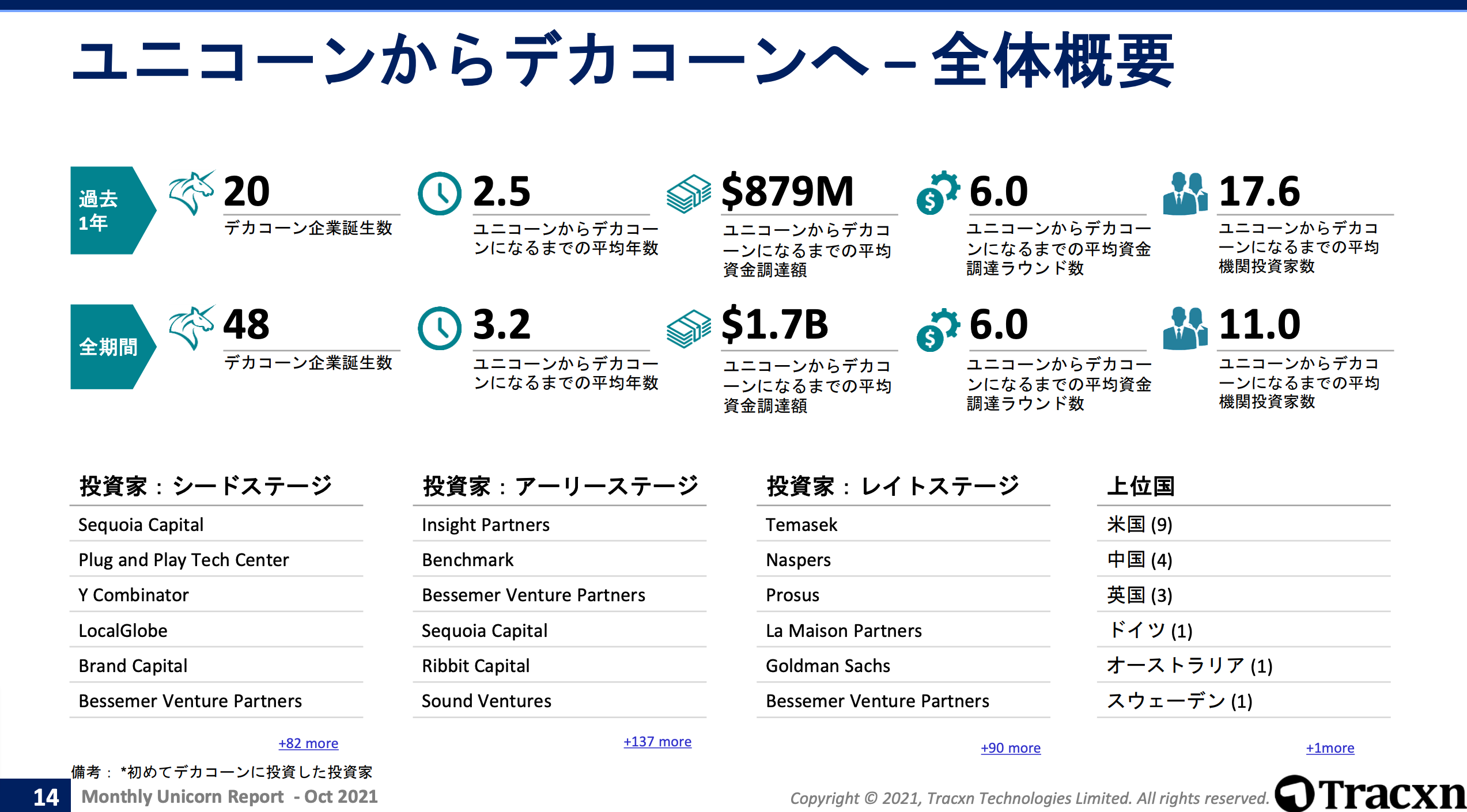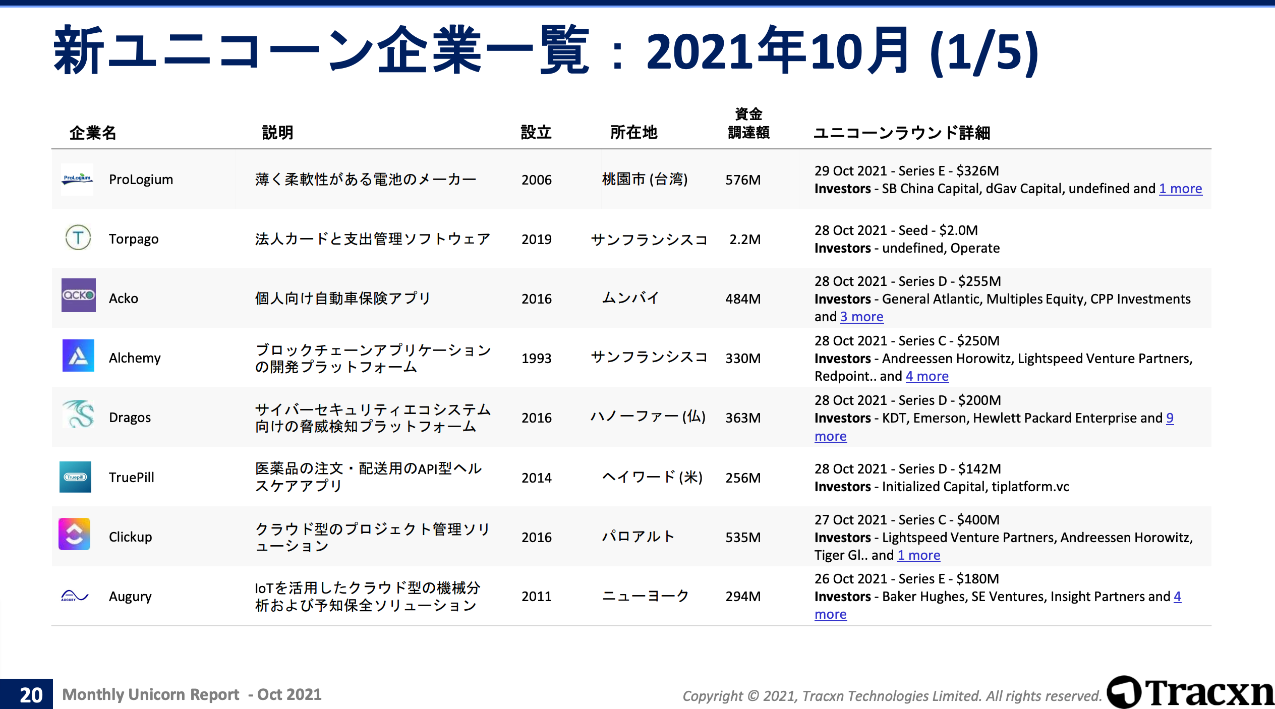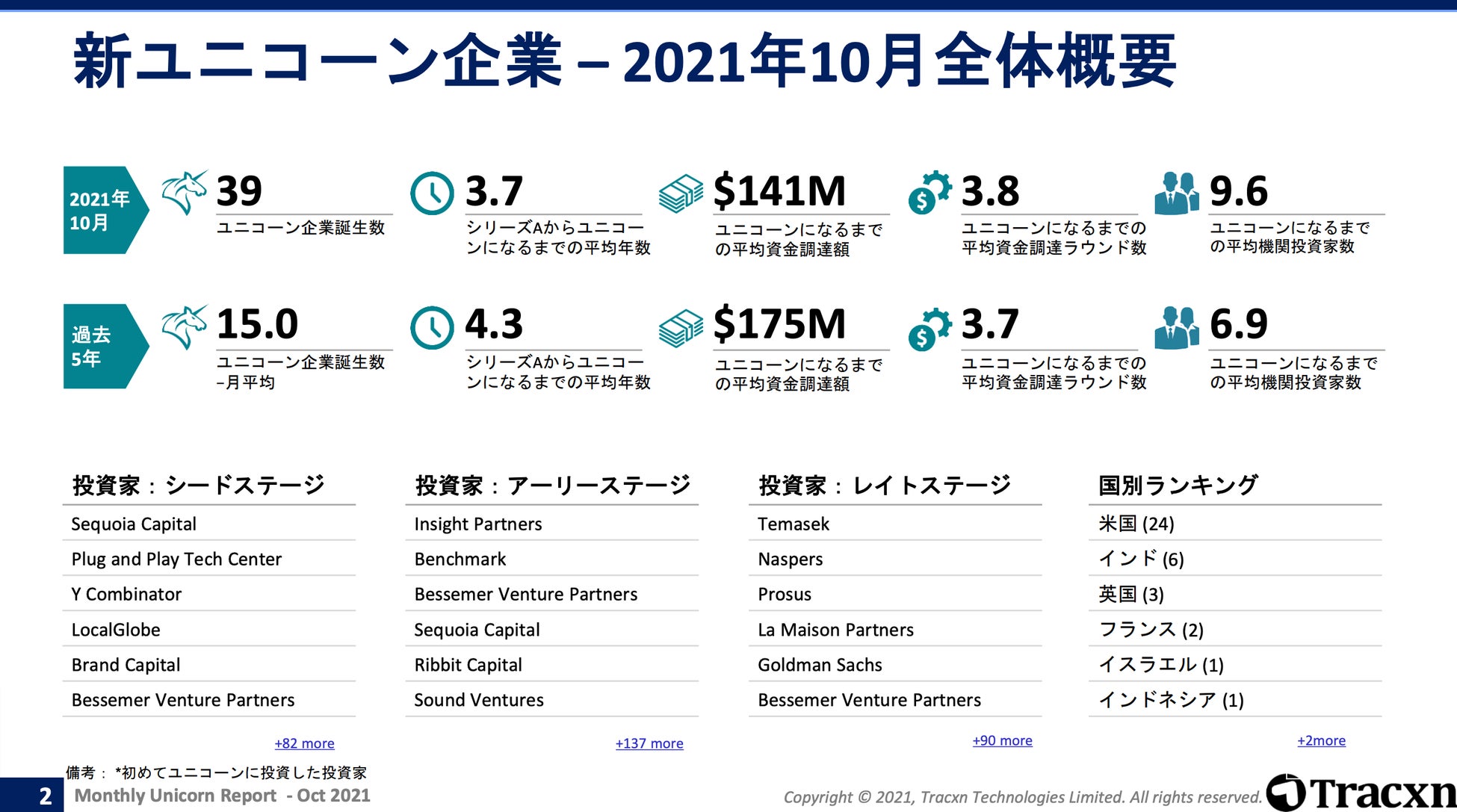 イシン株式会社(本社:東京都新宿区 代表取締役社長:片岡 聡)は、スタートアップデータ分析サービス「Tracxn」による「2021年10月 Monthly Unicorn Report」の日本語訳版をリリースいたしました。