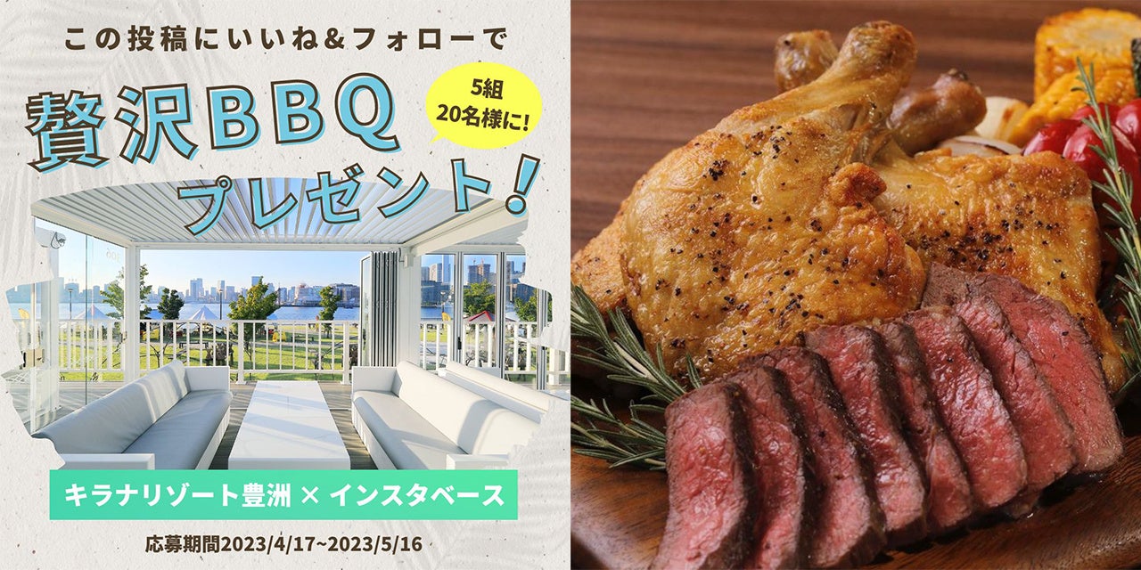 この度、高揚感に包まれたアーバンリゾートを体感できる、都内最大級のBBQ施設「KIRANAH GARDEN TOYOSU」がインスタベースより予約・利用可能となり、スペースおよび飲食プランの提供を開始いたします。