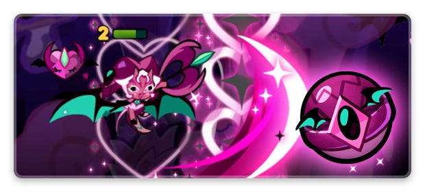 「ライチドラゴン龍クッキー」は、基本能力が発動すると、斧を振り回して敵を魅惑状態にします。魔法のキャンディを製作すると、能力終了後に魔法のキャンディカウントを獲得します。 その時、斧を振り回して障害物を破壊し、魅惑ゼリーを生成します。レジェンドペット「ドラゴンハートバット」は、一定時間毎にハート超音波を発射し、それに当たったゼリーを「ドキドキハートゼリー」に変えます。