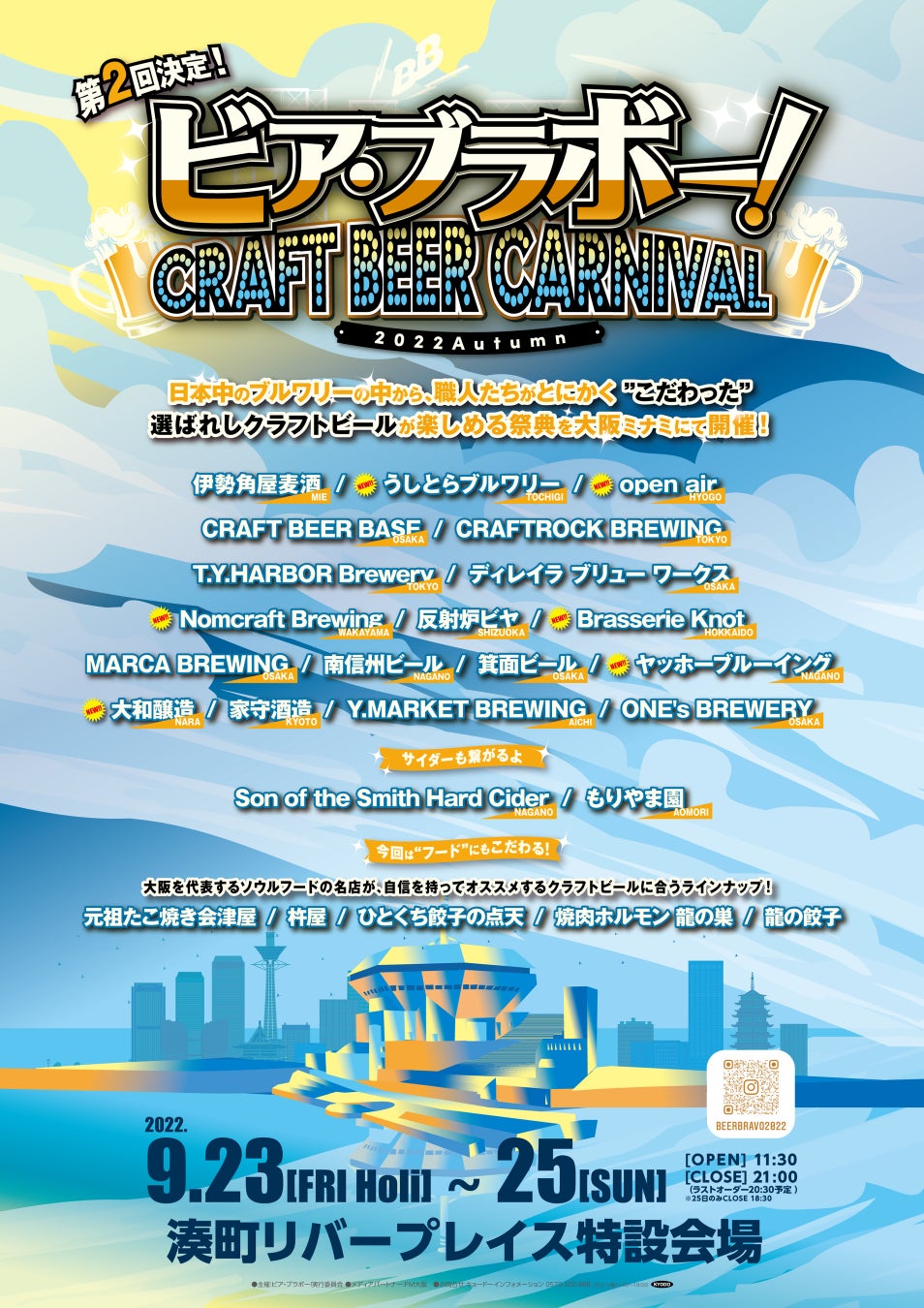 9月23日(金・祝) ~25日(日)湊町リバープレイスにてクラフトビールの祭典が大好評につき、早くも第2回開催!「ビア・ブラボー!~Craft Beer Carnival~ 2022 Autumn」