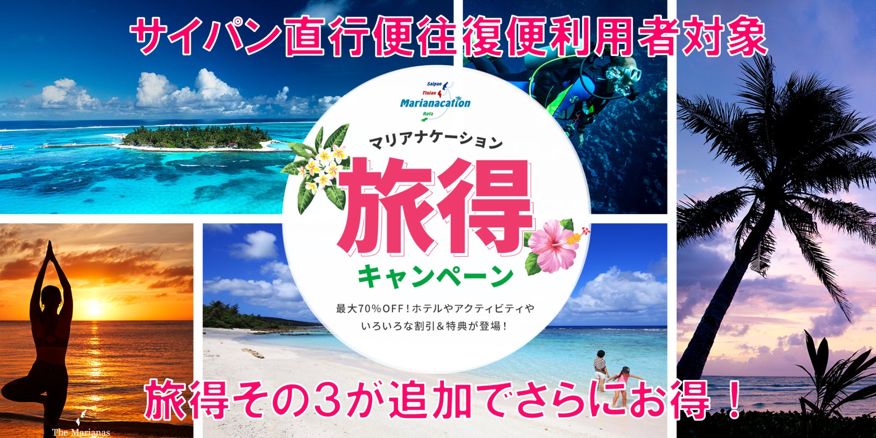 マリアナ政府観光局では、マリアナ3島でのさまざまな体験をお得に提供するため、現地パートナー計45社とユナイテッド航空の協力のもと、「マリアナケーション旅得キャンペーン」を展開中です。まだ一度もサイパンを訪れたことがない方、何度も来島経験のある旅慣れた方、そして子供から大人まで、誰もがお得に楽しんでご利用いただける当キャンペーンをぜひご活用ください。