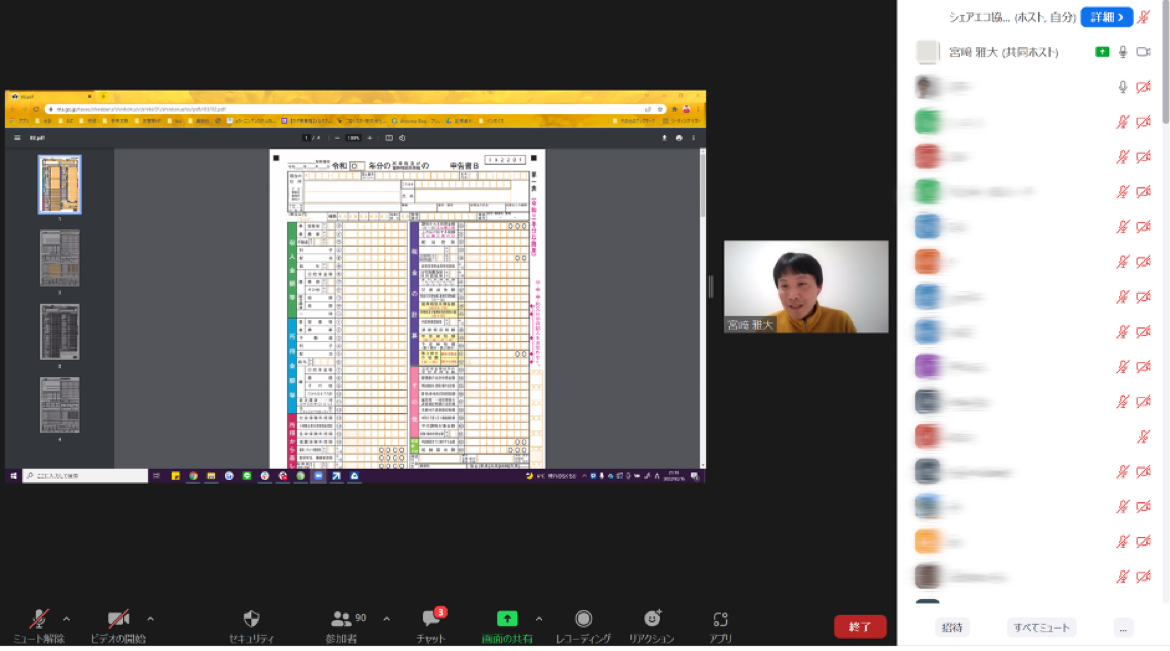 本講座では、はじめて確定申告をする方や、特にシェアサービスを利用して収入を得ている方を対象に情報や相談の場を提供致しました。