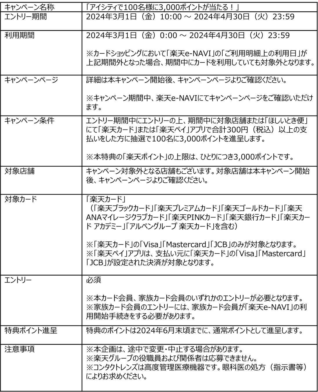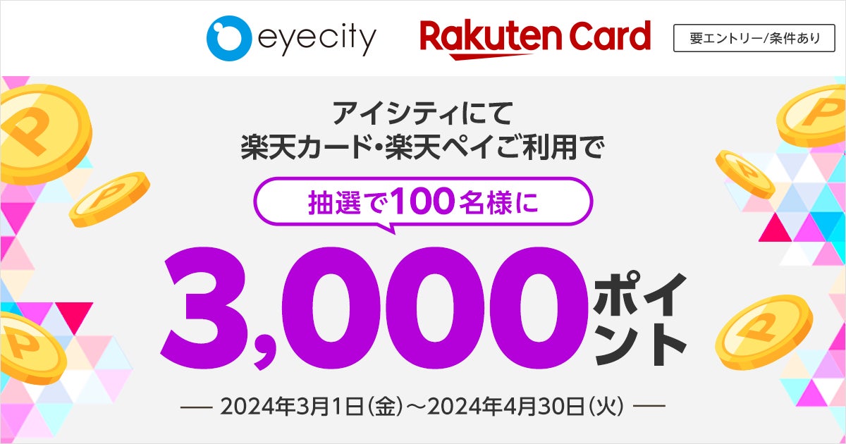 さらに、2024年3月1日(金)から4月30日(火)まで、「アイシティで100名様に3,000ポイントが当たる!」キャンペーンも実施します。本抽選キャンペーンの概要は、下記キャンペーン概要詳細をご確認下さい。