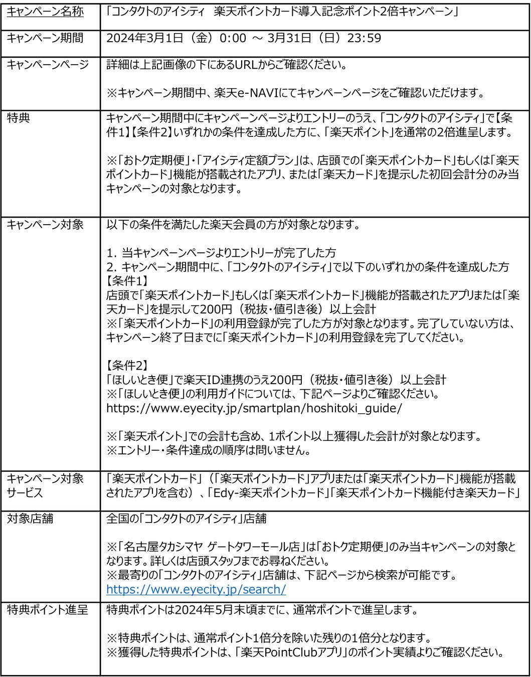 <コンタクトのアイシティ 楽天ポイントカード導入記念 ポイント2倍キャンペーン>