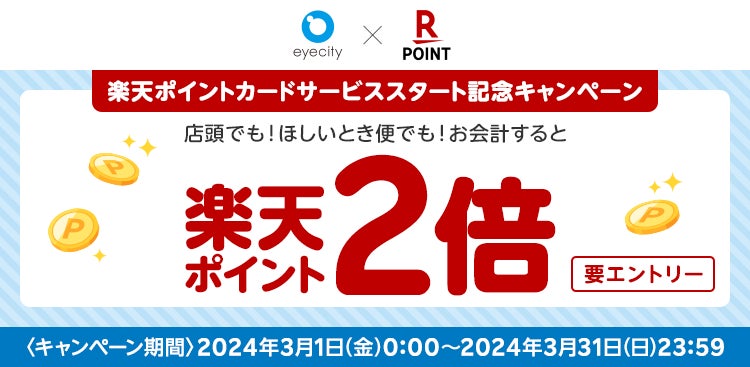 この度、「楽天ポイントカード」の導入を記念して、2024年3月1日(金)から3月31日(日)まで、「楽天ポイントカード導入記念ポイント2倍キャンペーン」を実施します。キャンペーン期間中にエントリーのうえ、アイシティ店舗(*2)にて、「楽天ポイントカード」もしくは「楽天ポイントカード」機能が搭載されたアプリ、または「楽天カード」裏面のバーコードを提示して200円(税抜・値引き後)以上の会計をした方、または「ほしいとき便」(*3)に「楽天ポイント」オンライン(*4)を連携して200円(税抜・値引き後)以上の会計をした方に、「楽天ポイント」を通常の2倍進呈します。