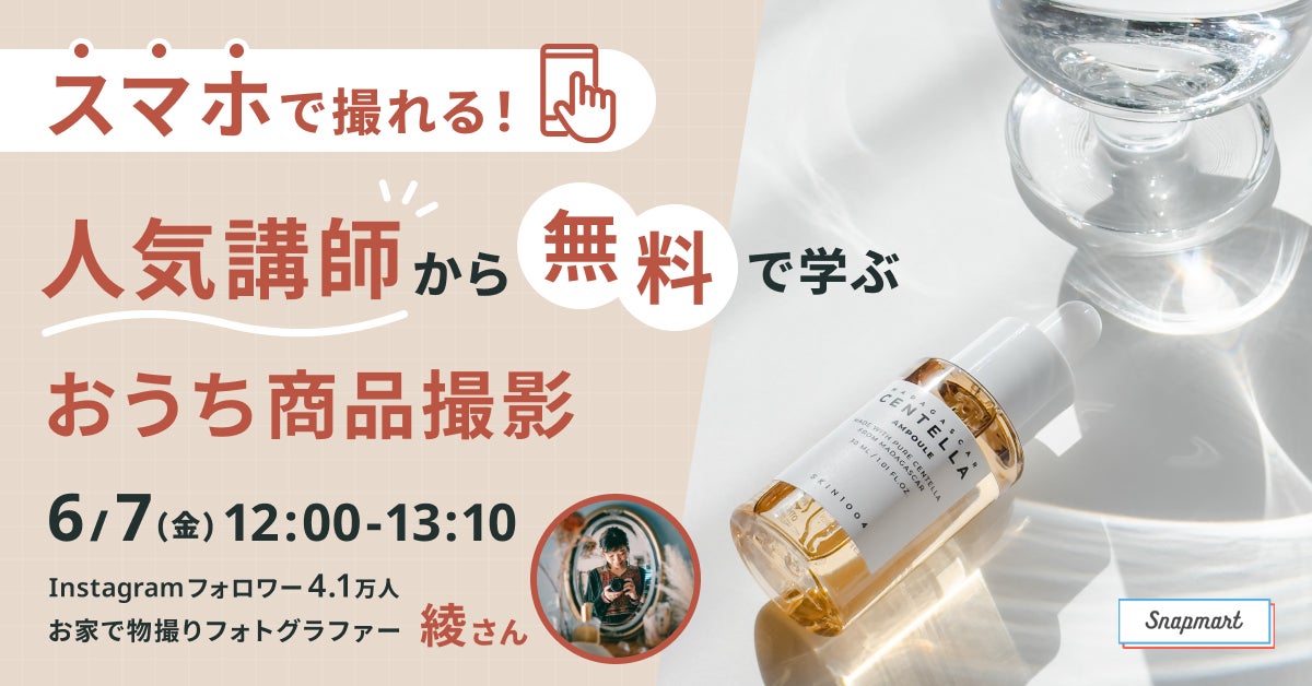 申込方法・詳細:https://info.snapmart.jp/product-photography-seminar/