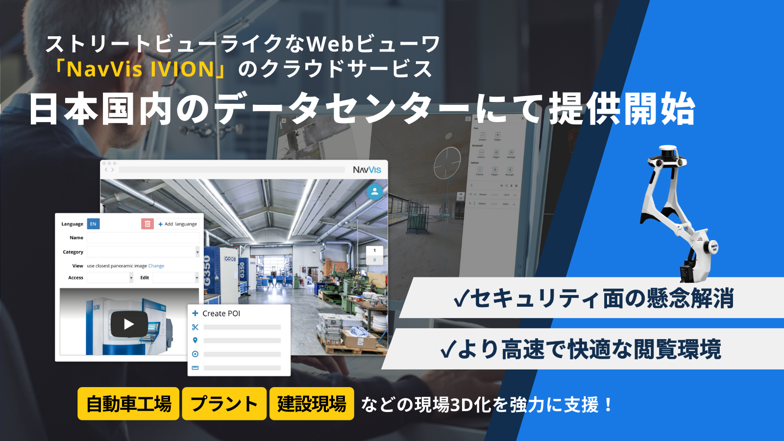 ストリートビューライクなWebビューワ「NavVis IVION」のクラウドサービスを日本国内のデータセンターにて提供開始