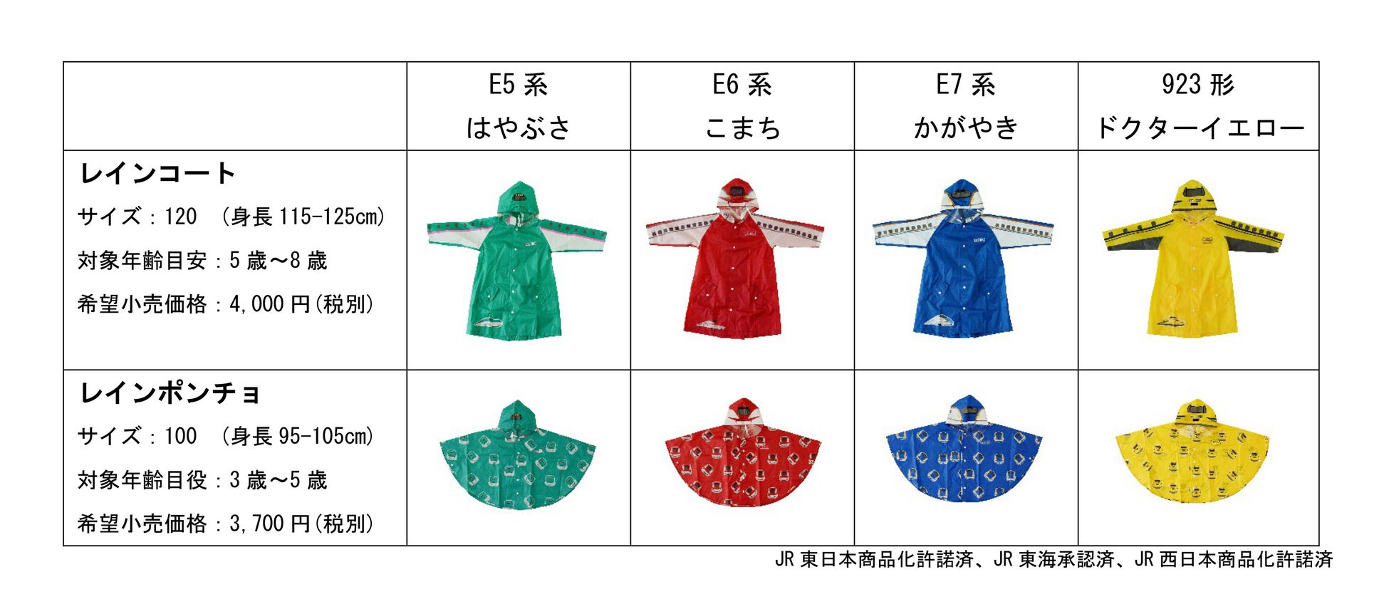 新幹線デザインのこども用レインコートとポンチョをリニューアル発売