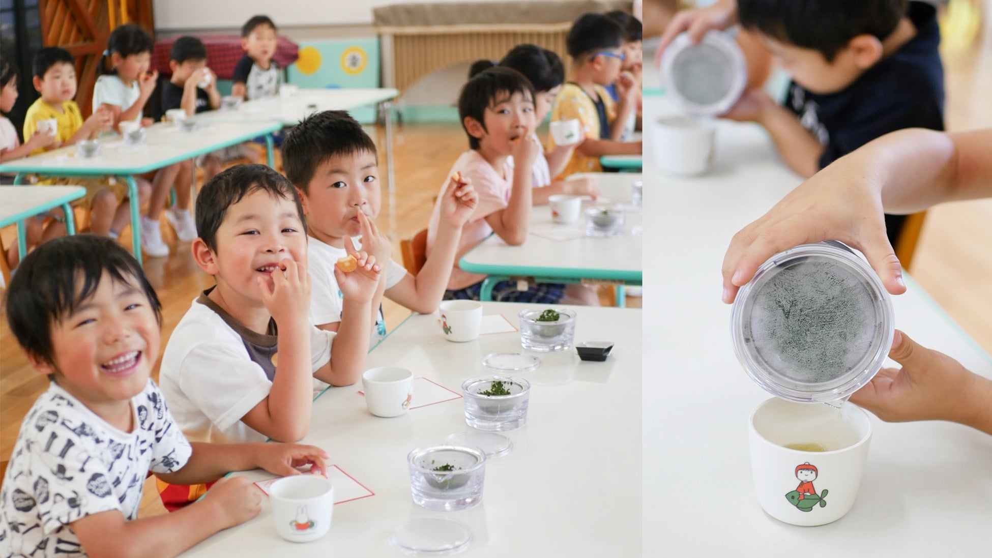 透明急須は「割れない」「熱くない」「透明(中身が見える)」という特徴を備えているため、安全面の考慮はもちろん、視覚的にもお茶を楽しめるという点から、子どもたちの五感を刺激する日本茶体験を行うことができました。