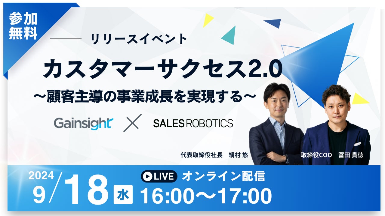 SALES ROBOTICS、Gainsight(ゲインサイト)と戦略パートナーシップを締結、カスタマーサクセスの戦略設計から実装・運用までの総合支援サービスの提供を開始