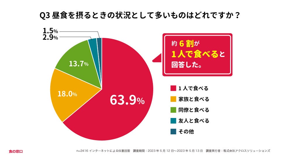 63.9%の人が「1人で食べる」と回答したことが分かりました。