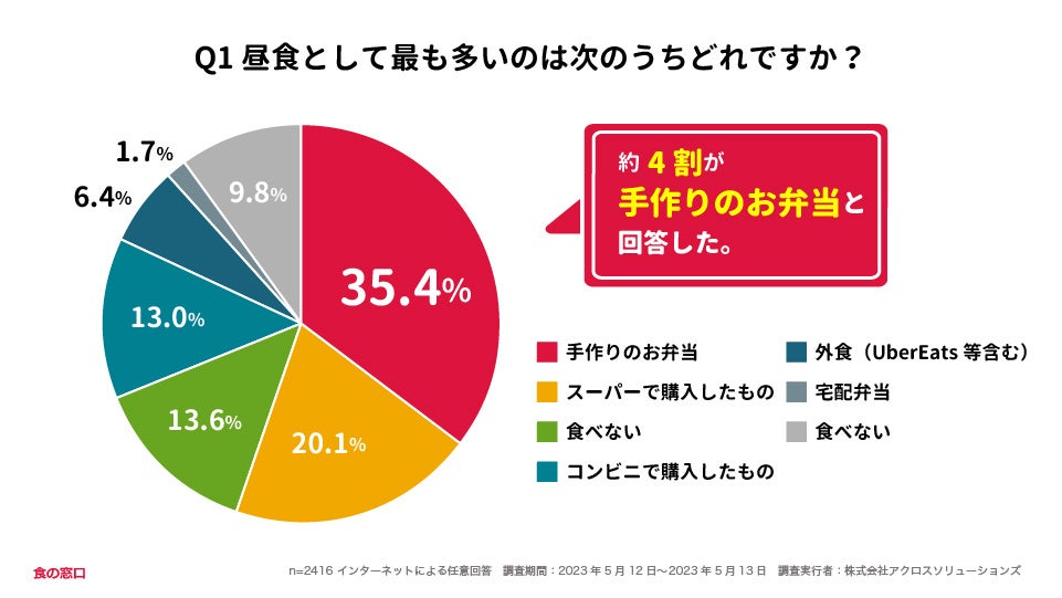 最も多かったのは「お弁当など作った(作ってもらった)もの」を食べるという回答で35.4%でした。