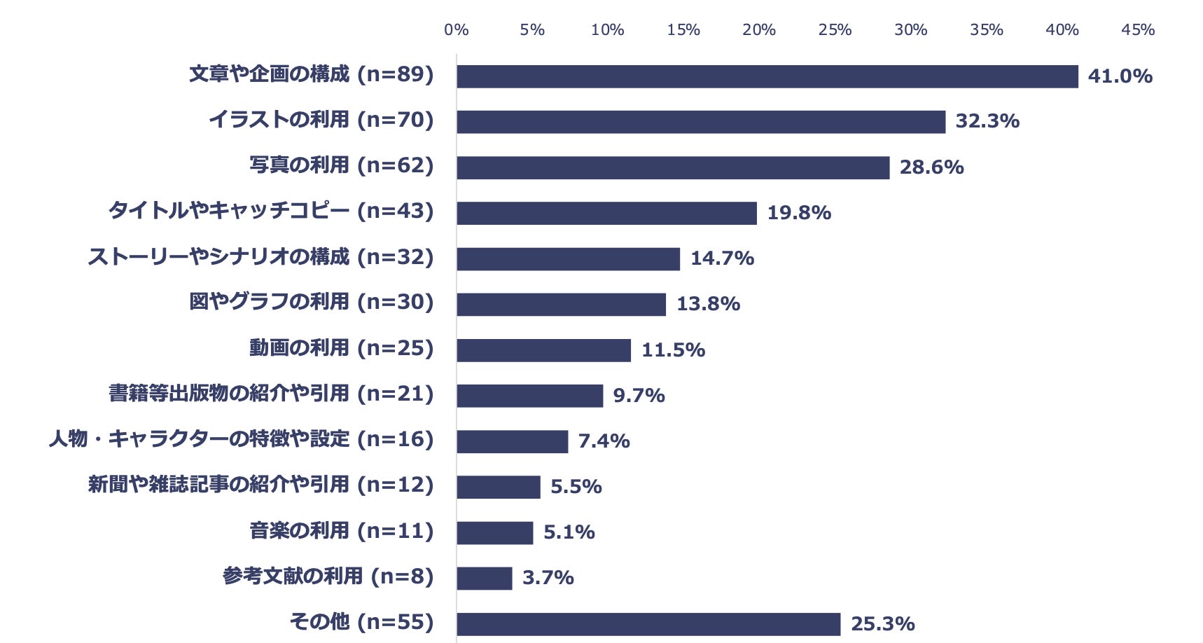 ・文化庁が設立している『文化芸術活動に関する法律相談窓口』においても、2023年度で最も多く寄せられた相談は著作権等の権利関係によるものであり、全体の約25%を占めています。【ご参考②参照】