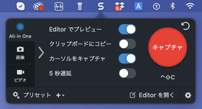 - 静止画面キャプチャ、動画キャプチャ、それらを組み合わせたオールインワンモード