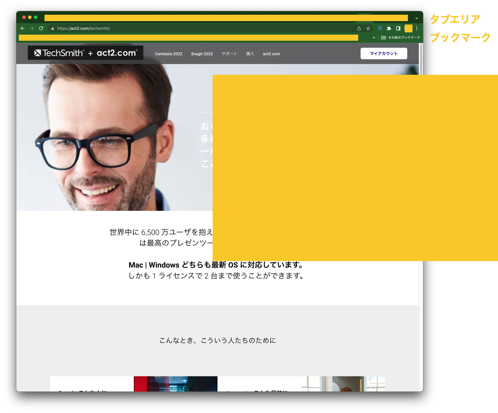 OS標準のキャプチャーでブラウザウィンドウをチャプチャーすると、タブエリアやブックマークエリアも含めてキャプチャーされてしまう...