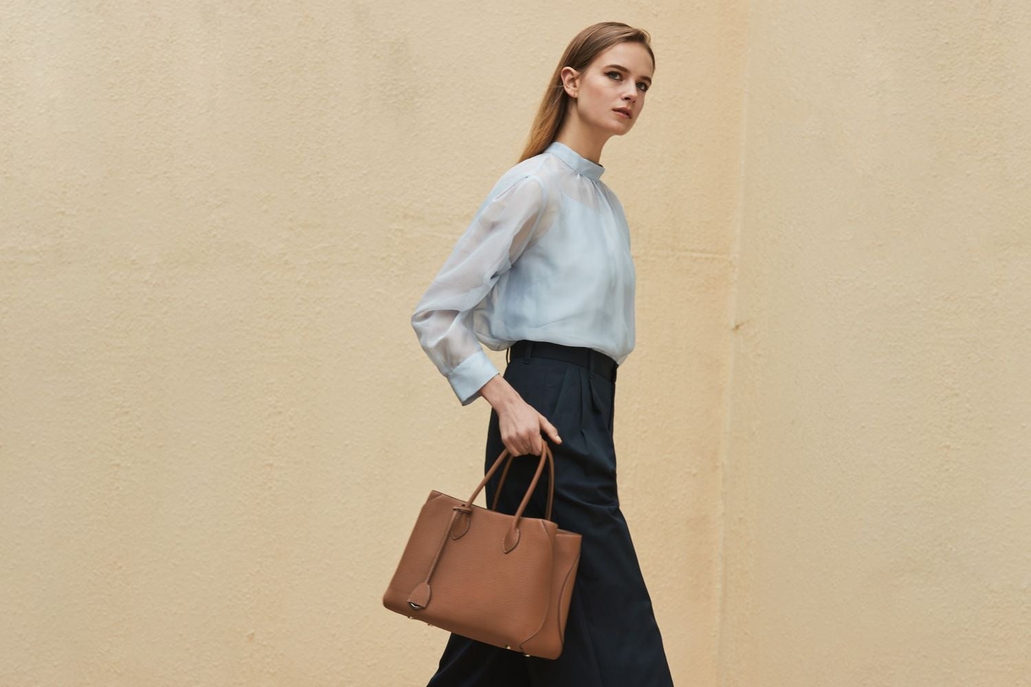 バッグと小物のレザーカラーを合わせるだけで、コーディネートに統一感が出て 洗練された印象を演出できます。