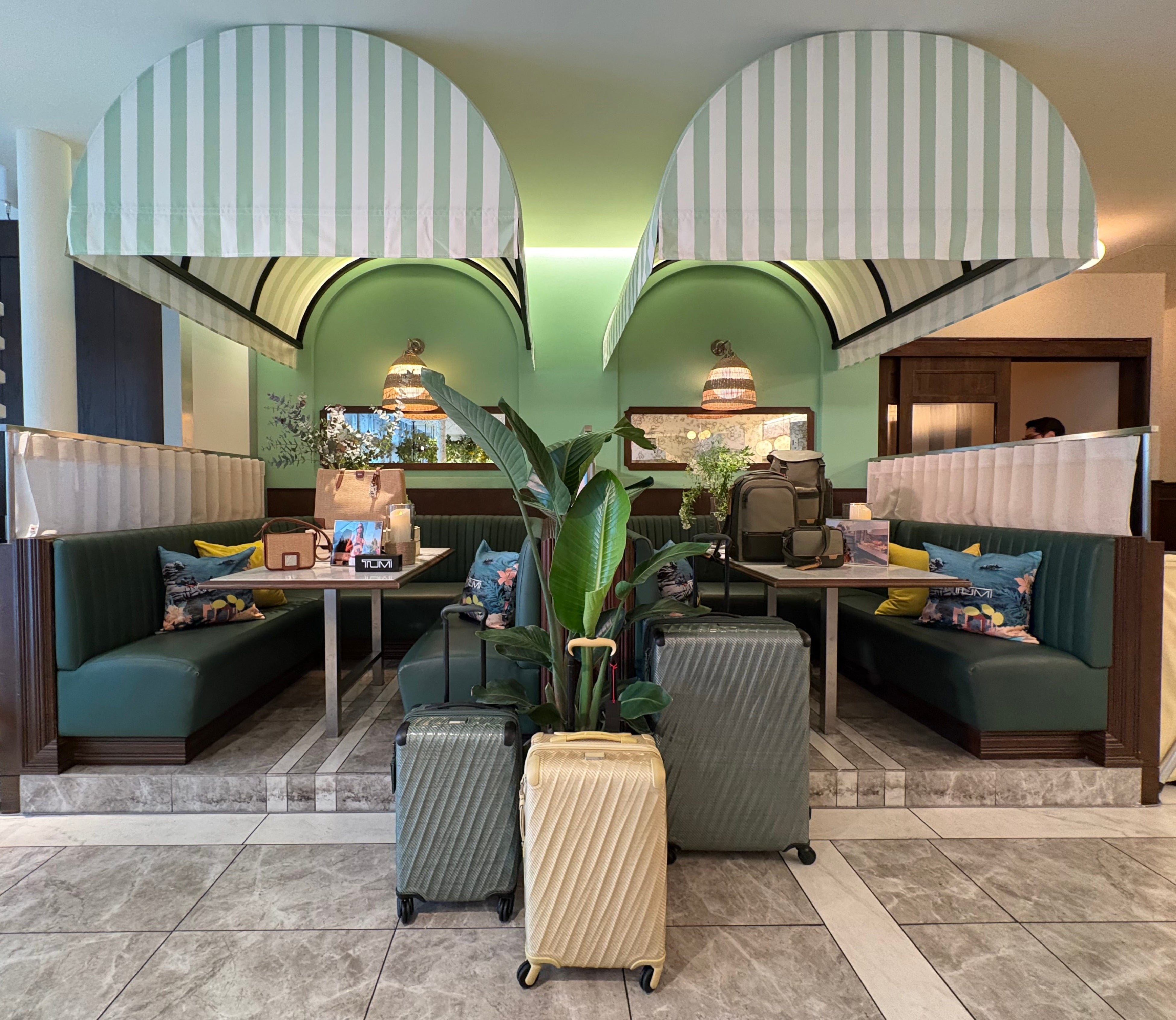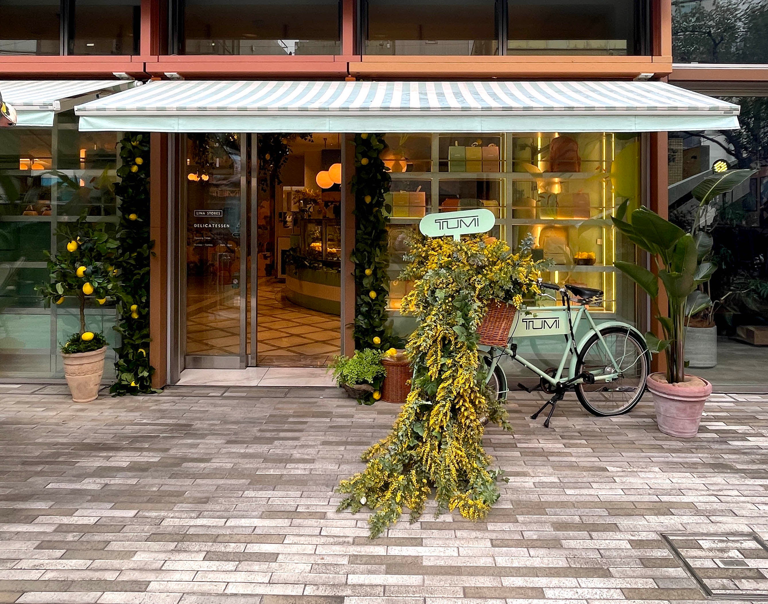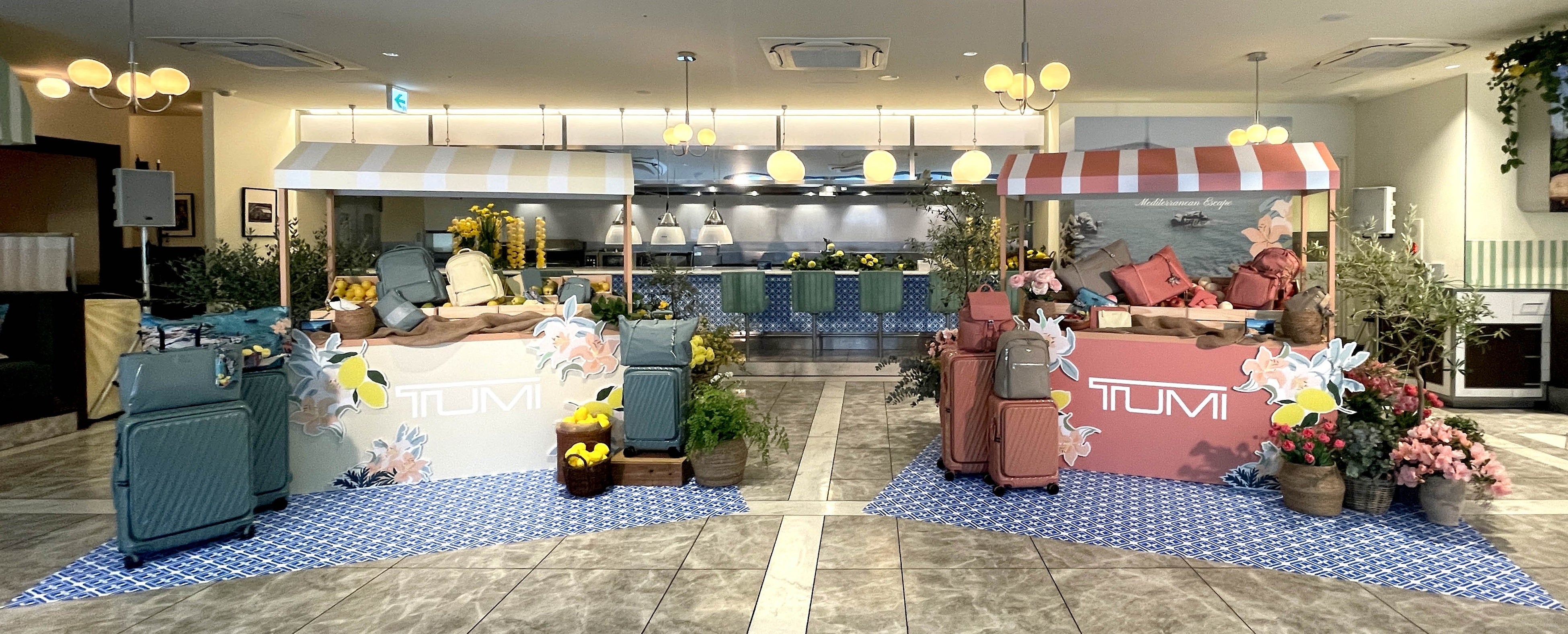 来場者は、都会の喧騒を離れ、アマルフィ海岸を思わせる夏のリゾートムードあふれる空間を楽しみました。会場は、やわらかなイエローや陽光を思わせるテラコッタカラーのストール、シーズンカラーのメディテレーニアン プリントのパラソルで装飾されたテラス席など、活気ある地中海の市場をイメージした空間を演出し、地中海の夏の暮らしを思わせる情景を再現しました。さらに、花々や豊かなグリーン、フレッシュなレモンで彩られた会場では、来場者がヨーロッパスタイルのフィンガーフードやワークショップ体験を楽しみながら、トゥミの新たなコレクションを堪能しました。