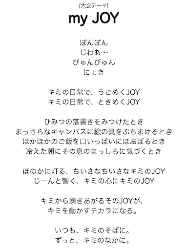 みなさんの日々のなかにある、「my JOY」はいったいなんでしょうか?今朝起きてから、今に至るまで、そして今この瞬間も。日常のなかに、みなさんのなかに、きっと存在するJOYを、ぜひ見つけてみてください。