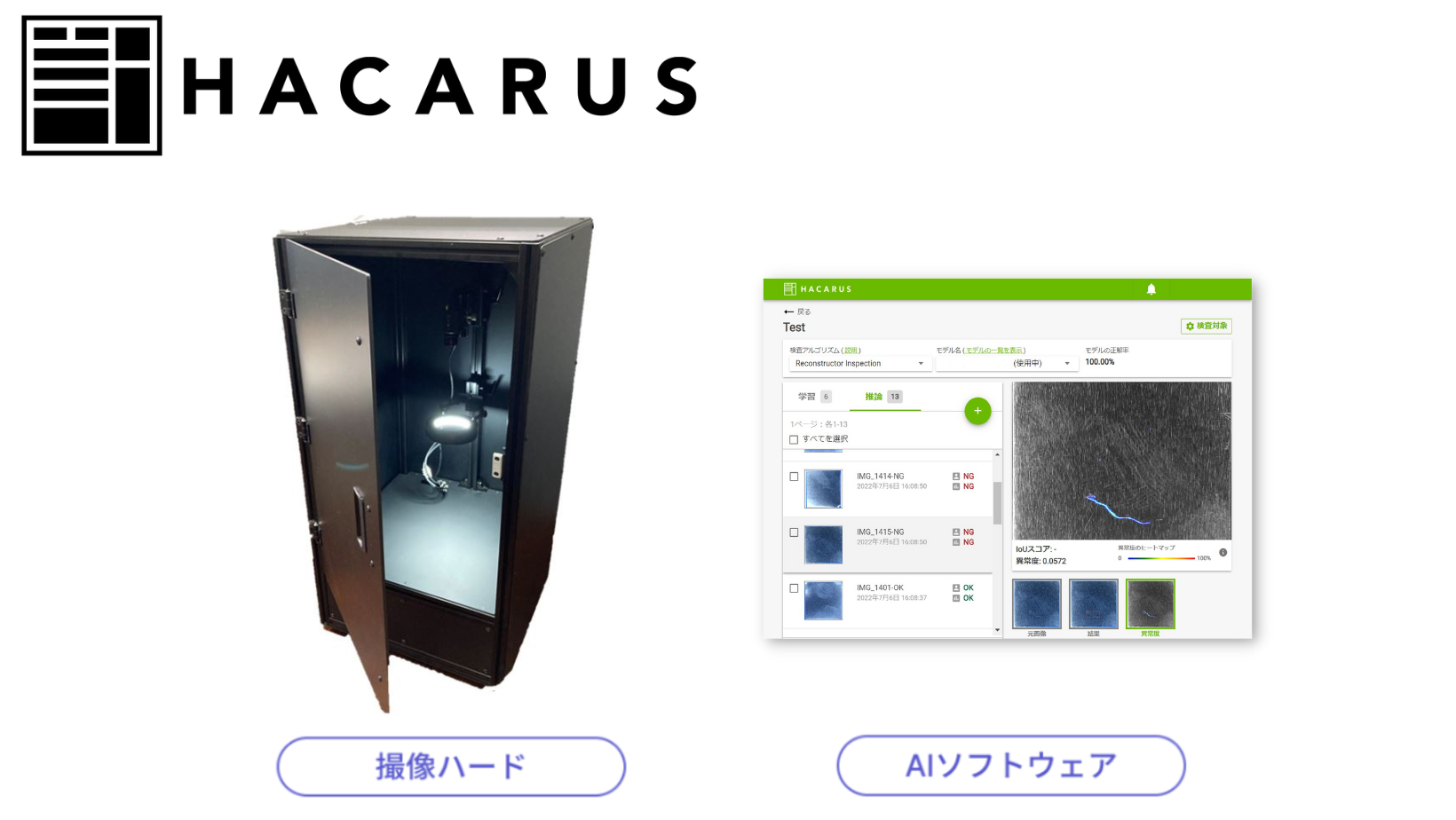 ※AIソフトウェア単体での販売も可能です。詳しくは製品紹介ページ(https://check.hacarus.com/ja/option_ja/)をご覧ください。