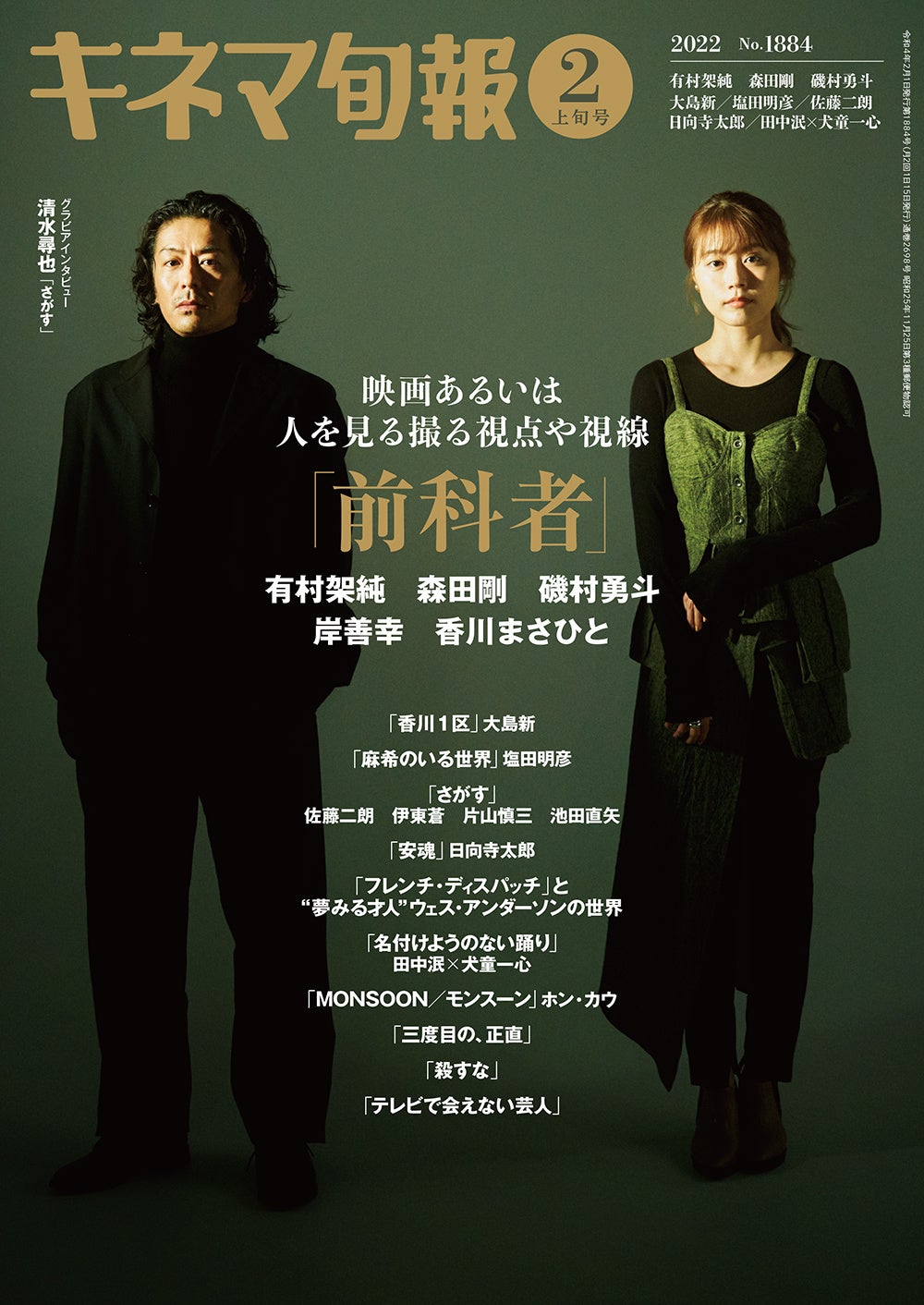 映画雑誌『キネマ旬報』2月上旬号(1月20日発売)にて、有村架純・森田剛主演の「前科者」(表紙巻頭18P)を大特集します。