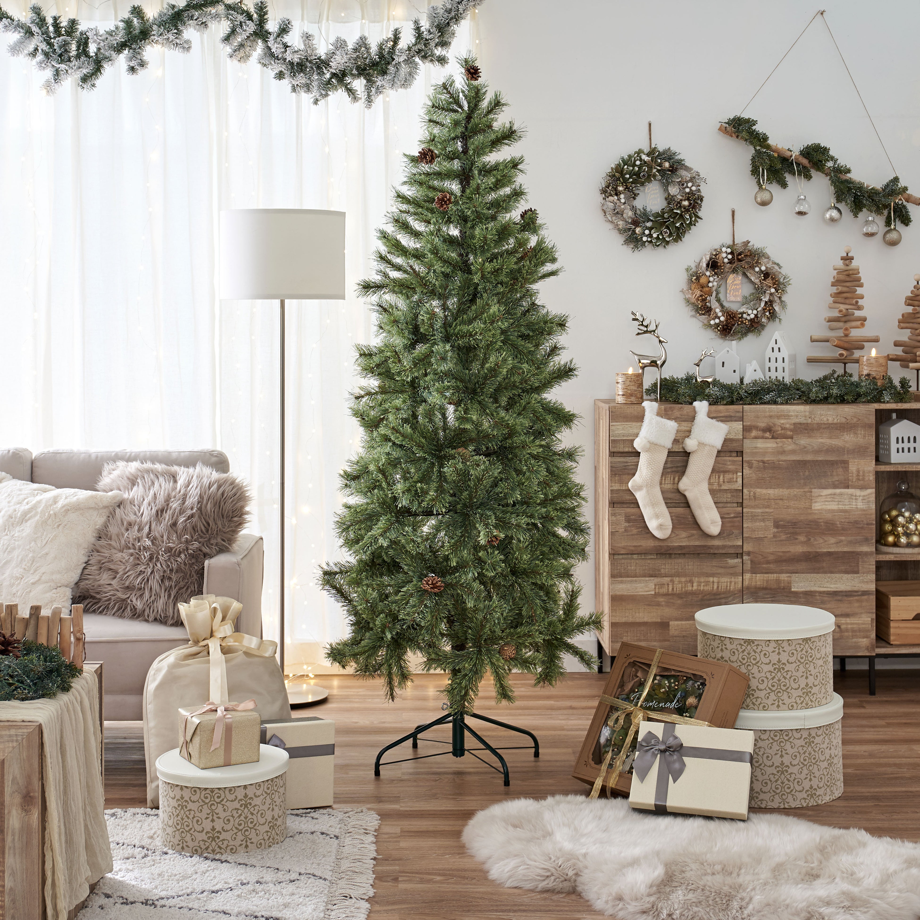 枝一本一本までこだわり、リアルなモミの木を追求した、枝葉のボリューム感たっぷりなヌードツリー。くすみがかった葉の色はインテリアに馴染みやすく、本物の松ぼっくりは枝葉と相まって、一層北欧の雰囲気を楽しめます。ハロウィンからクリスマスまで長い間楽しむことができます。
