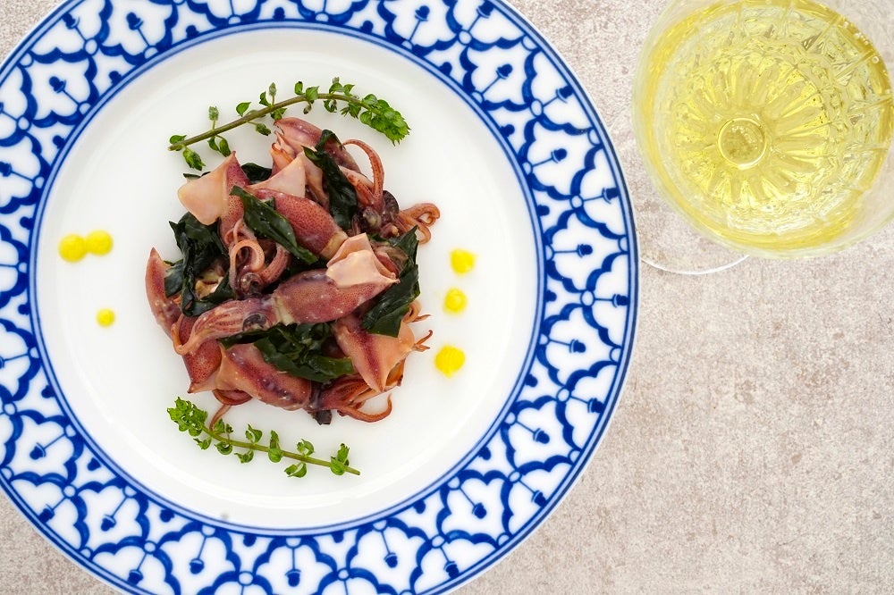 「アッサンブラージュ ジャポン 甲州」ならではの伸びやかな酸味と余韻の柔らかな苦み、そして柑橘のニュアンスが、旨味をたっぷりと含んだホタルイカ、そして酢味噌の甘酸っぱさとマッチする、この時期ならではのおいしい組み合わせです。
